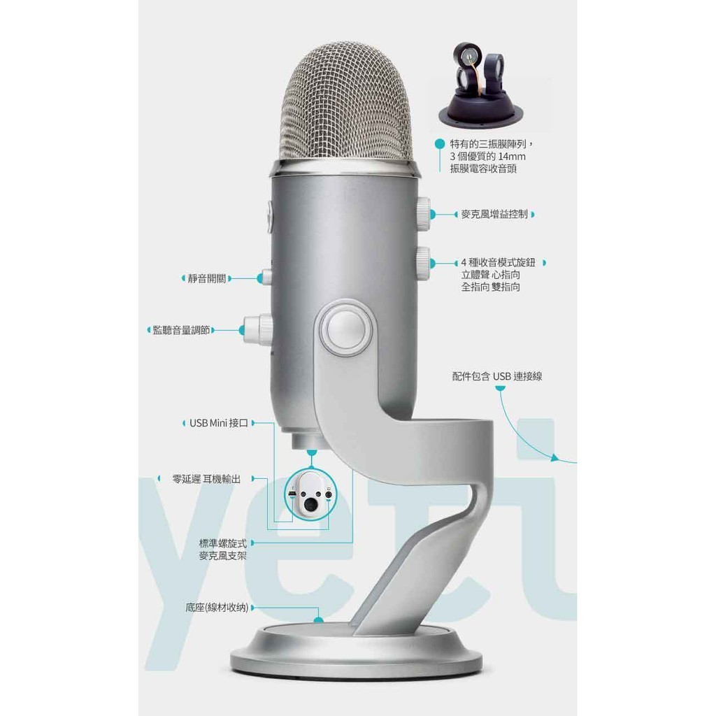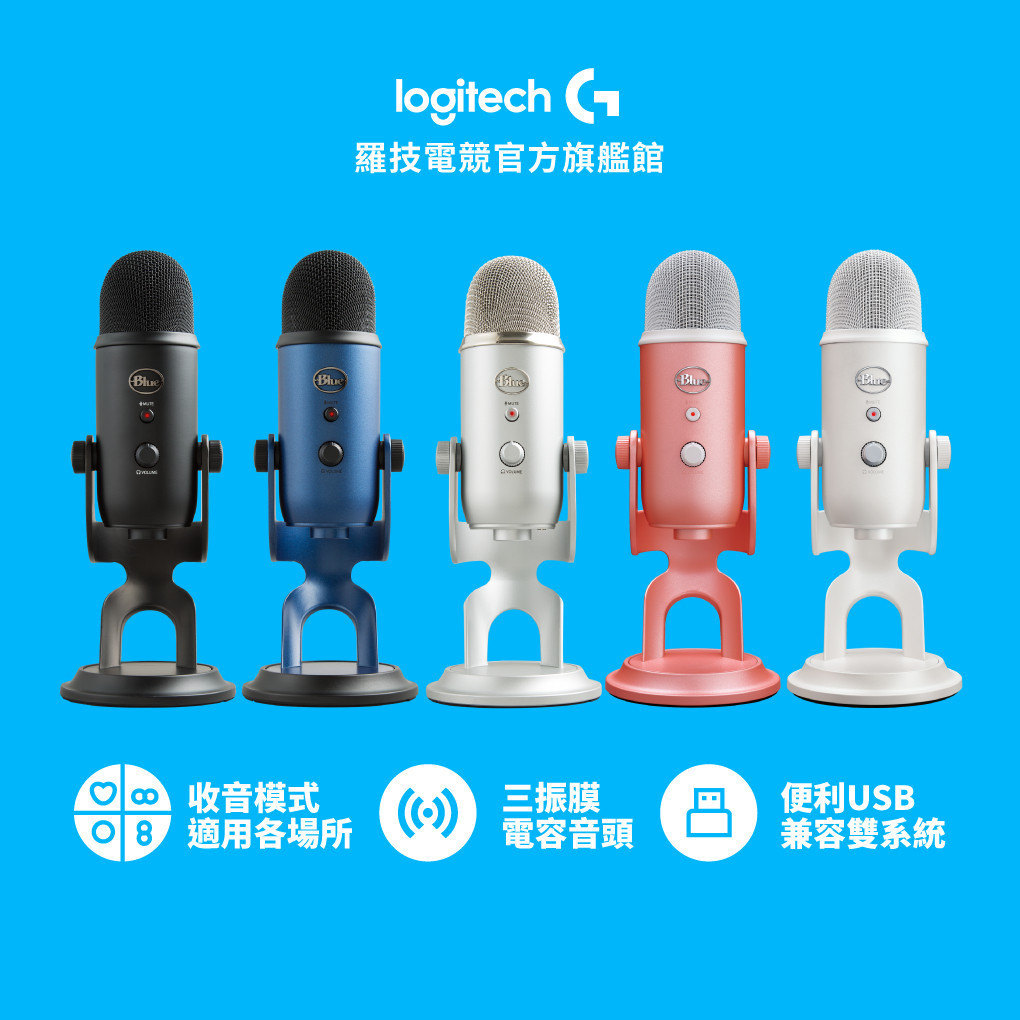 美國BLUE YETI 專業USB麥克風【電競館】霧銀+贈海綿套|午夜藍+贈海綿套|霧黑+贈海綿套|甜玫粉|炫光白Logitech G 羅技電競官方旗艦館