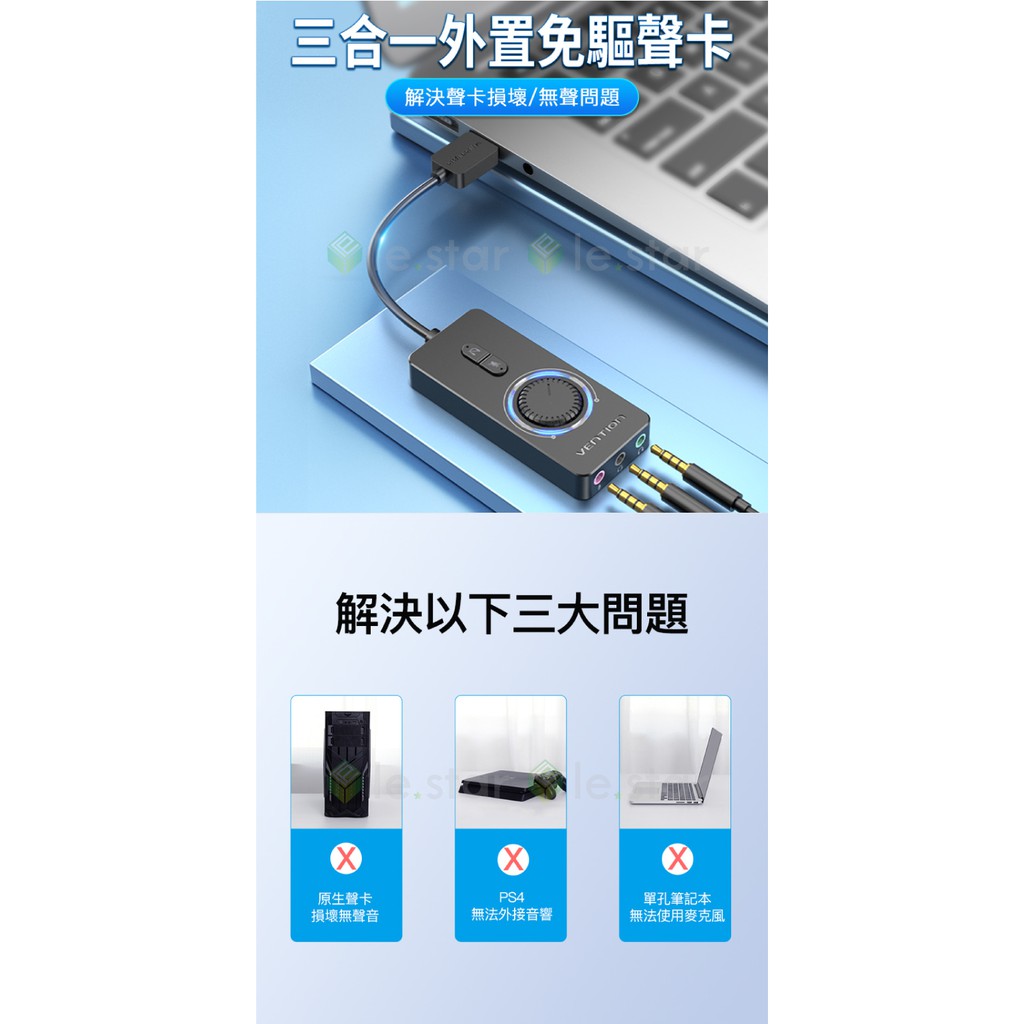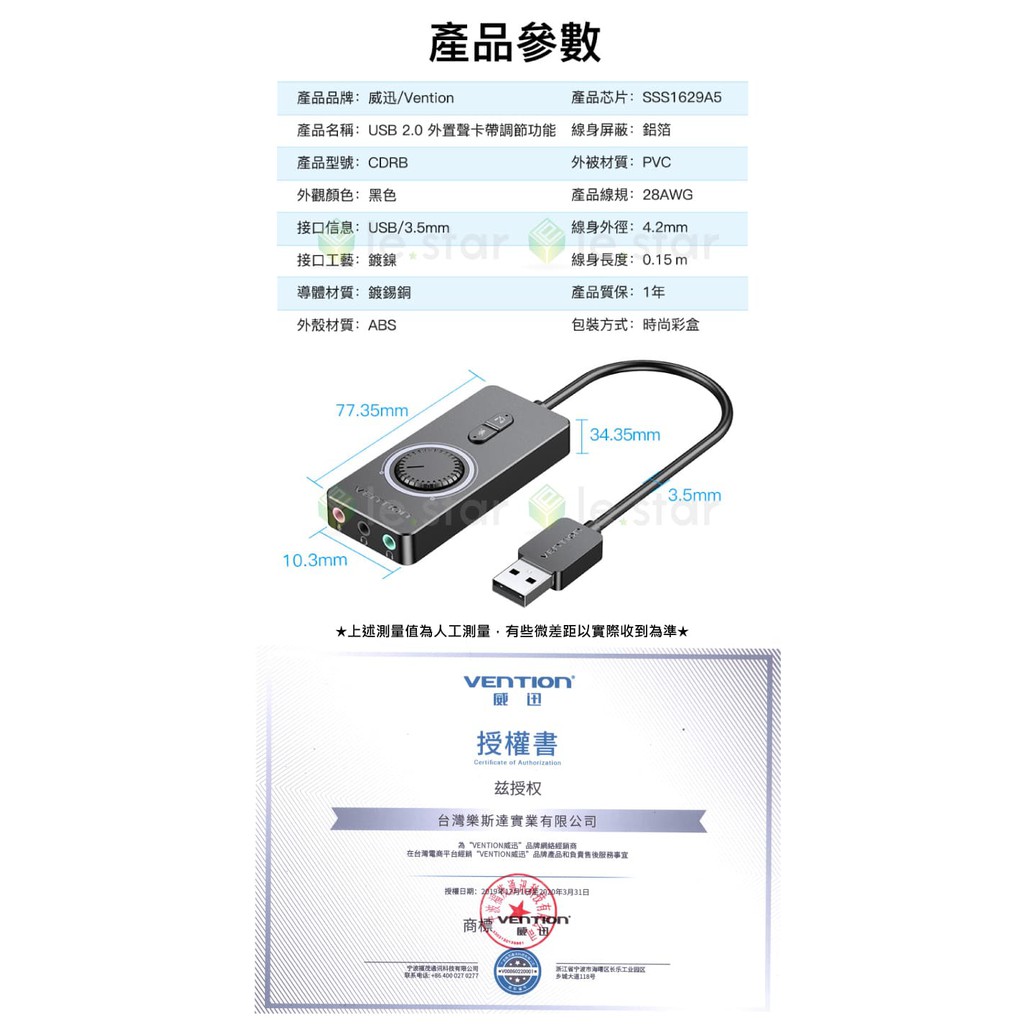 VENTION 威迅 CDR系列 USB 外置音效卡-帶音量調節/麥克風功能 0.15M 公司貨 可同時連接 一鍵靜音CDR|包裝破損lestar簡單生活