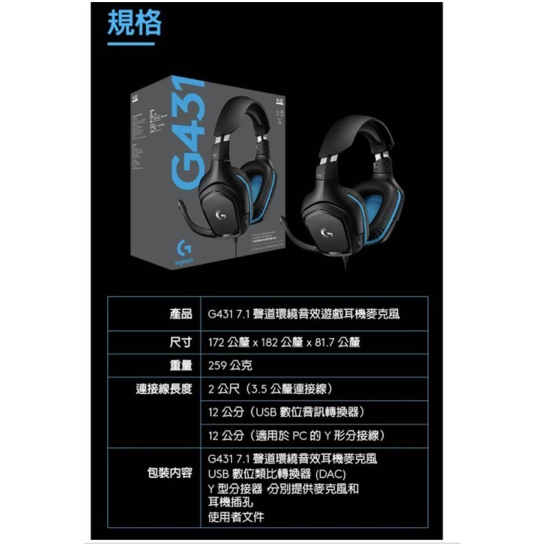 Logitech G 羅技 G431 7.1聲道環繞音效電競耳機麥克風【電競館】G431Logitech G 羅技電競官方旗艦館