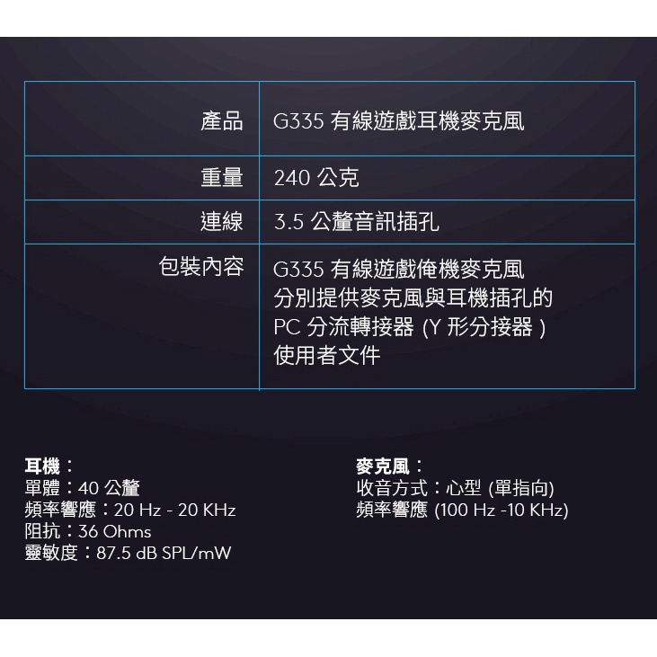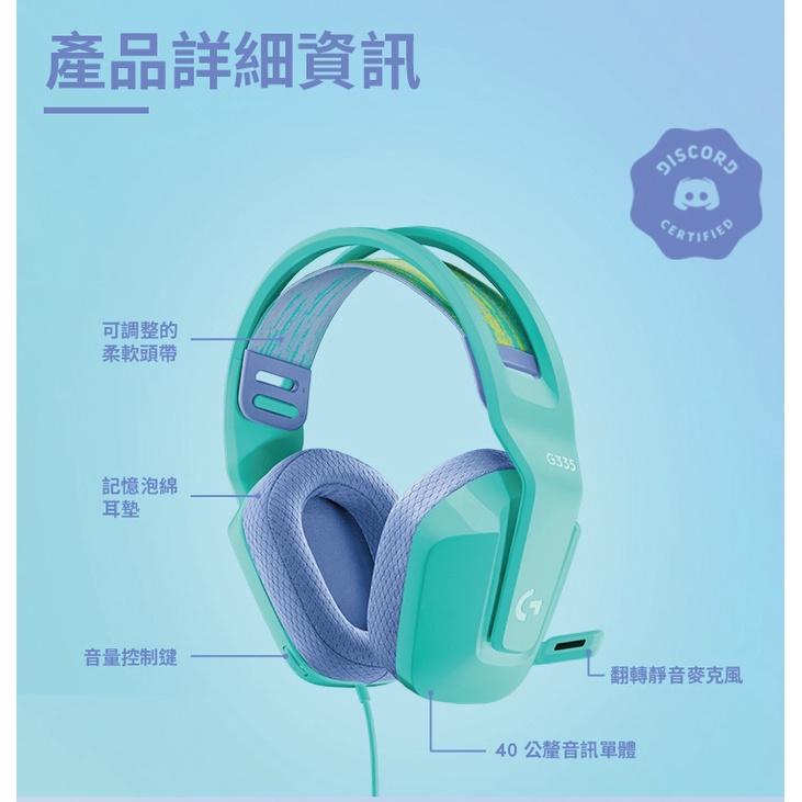Logitech 羅技 G335 有線遊戲 耳機麥克風 3色選【現貨】【GAME休閒館】神秘黑|湖水綠|極光白GAME休閒館