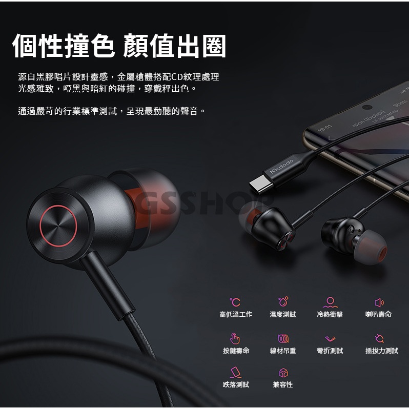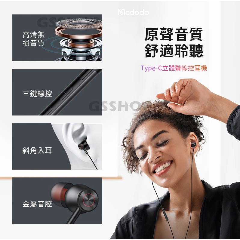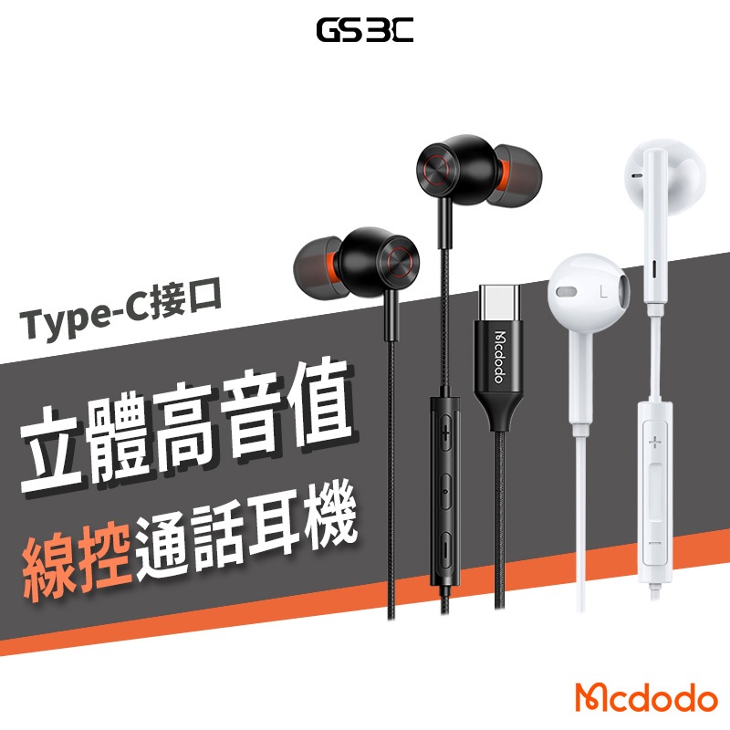Mcdodo 麥多多 Type C 有線耳機 支援iPhone 15 線控 通話 HI-FI音效 DAC芯片 適用安卓入耳式-黑|平耳式-白GS 3C 手機平板配件選品店