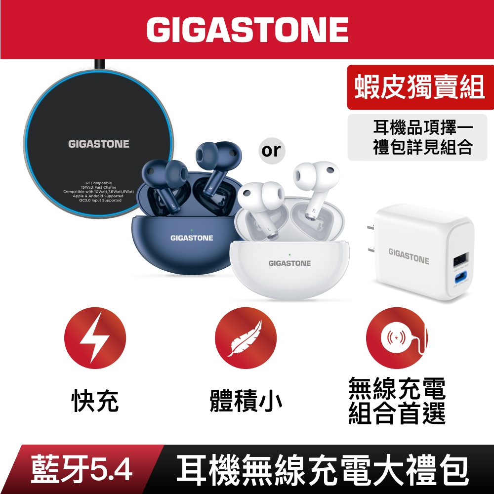 【GIGASTONE】藍牙耳機無線充電大禮包 含充電盤、快充充電器|藍牙5.4 耳機、15W無線充電盤、20W快充頭TAQ1典雅藍+無線充電盤+充電器|TAQ1高貴白+無線充電盤+充電器GIGASTONE 立達國際官方旗艦店