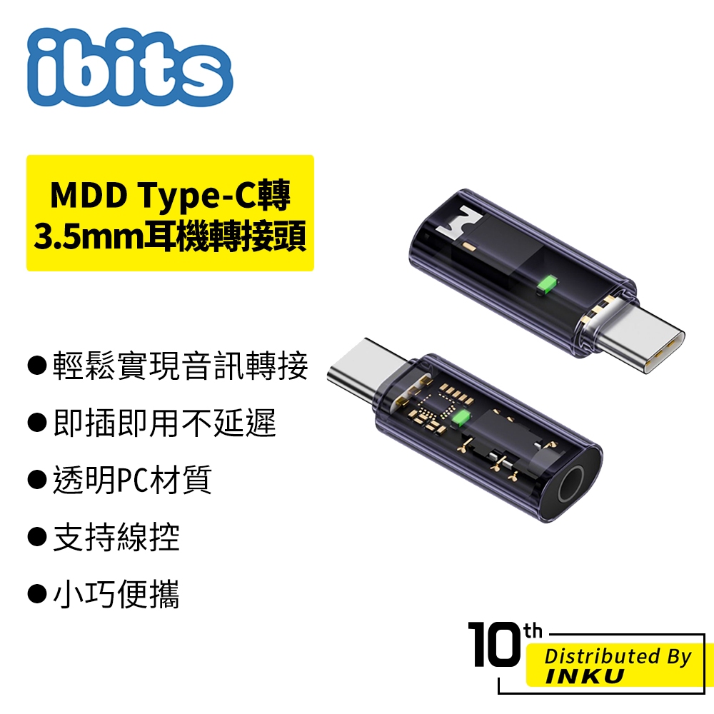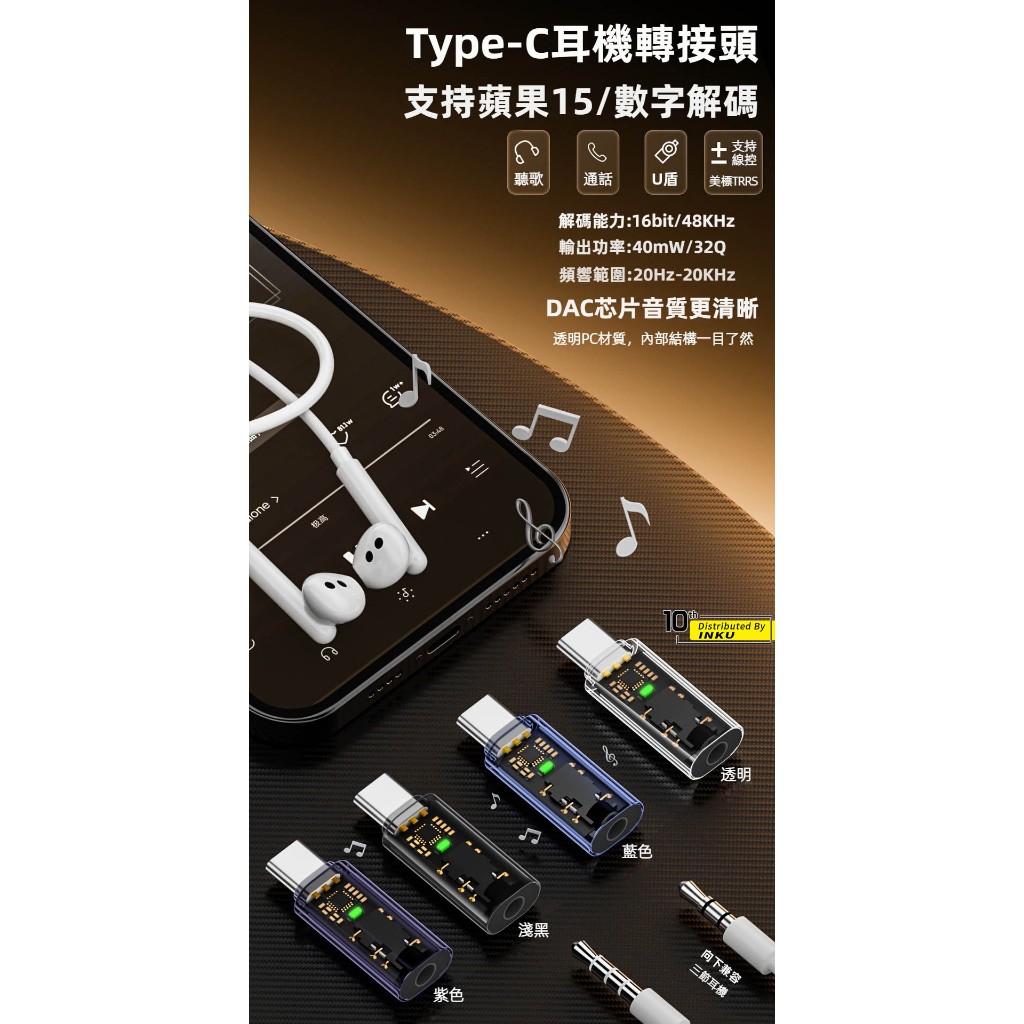 ibits MDD Type-C轉3.5mm耳機轉接頭 DAC解碼 音訊通話 適用蘋果15淺黑|藍色|紫色|透明ibits手機配件 官方旗艦館
