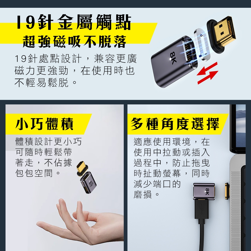 磁吸 可分離 HDMI 8K 60Hz HDMI數位轉接頭 影音線 轉接 磁吸頭 磁鐵 磁力 HDMI 線 頭直頭磁吸|右彎磁吸|左彎磁吸|270度彎頭磁吸|90度彎頭磁吸i-gota官方旗艦館|昶興電子