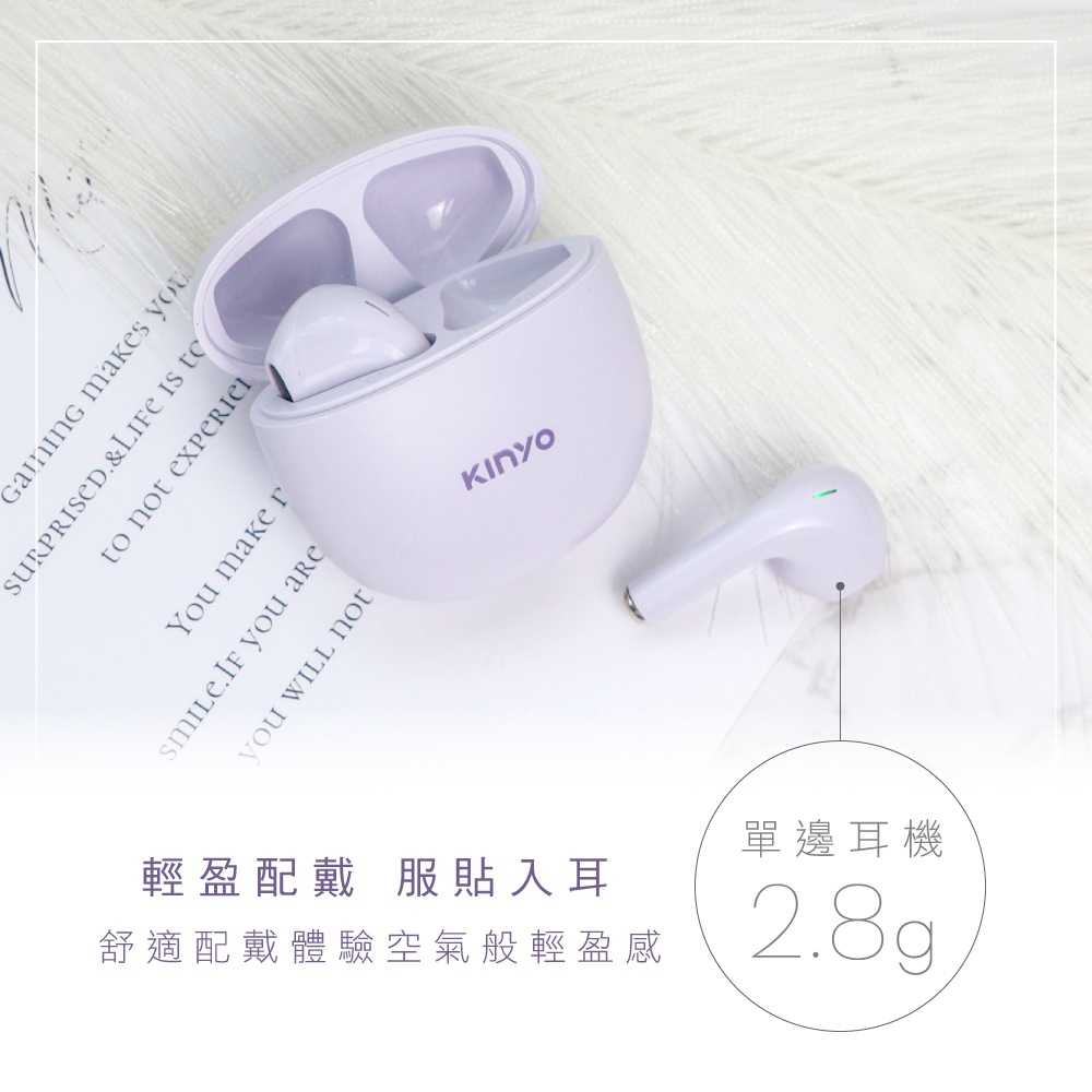 〖KINYO〗 Mini半入耳真無線藍牙耳機 (BTE) ENC環境降噪 藍牙5.3 半入耳式BTE3901G 綠色|BTE3901PI 粉色|BTE3901PU 紫色KINYO官方旗艦店_家電館