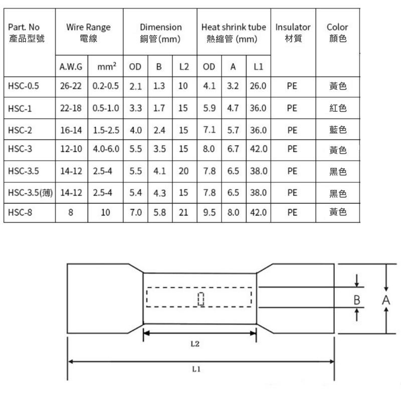 熱縮中接端子 熱縮中接端子 熱收縮 中接管 絕緣端子 中間接頭 電線連接器【A460】E-HSC-8 黃|A-HSC-0.5 黃|B-HSC-1 紅|C-HSC-2 藍|D-HSC-3 黃|F-HSC-3.5 黑JOLIN久林批發~台灣出貨~滿50再結帳~