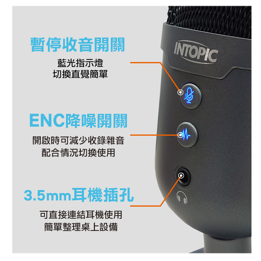 【Intopic】JAZZ-UB033 ENC 通話降躁 直播 USB 麥克風 專為實況/通話軟體設計【Intopic】JAZZ-UB033 ENC 通話降躁 直播 USB 麥克風 專為實況/通話軟體設計Intopic廣鼎國際 | 官方3C旗艦館