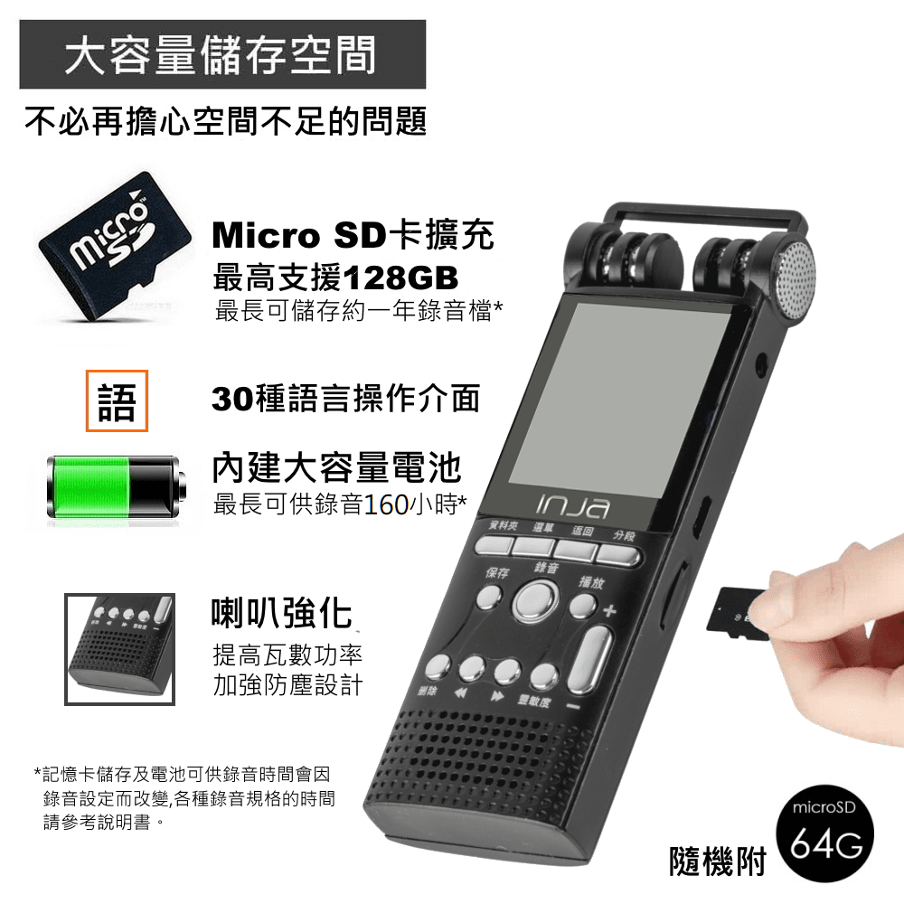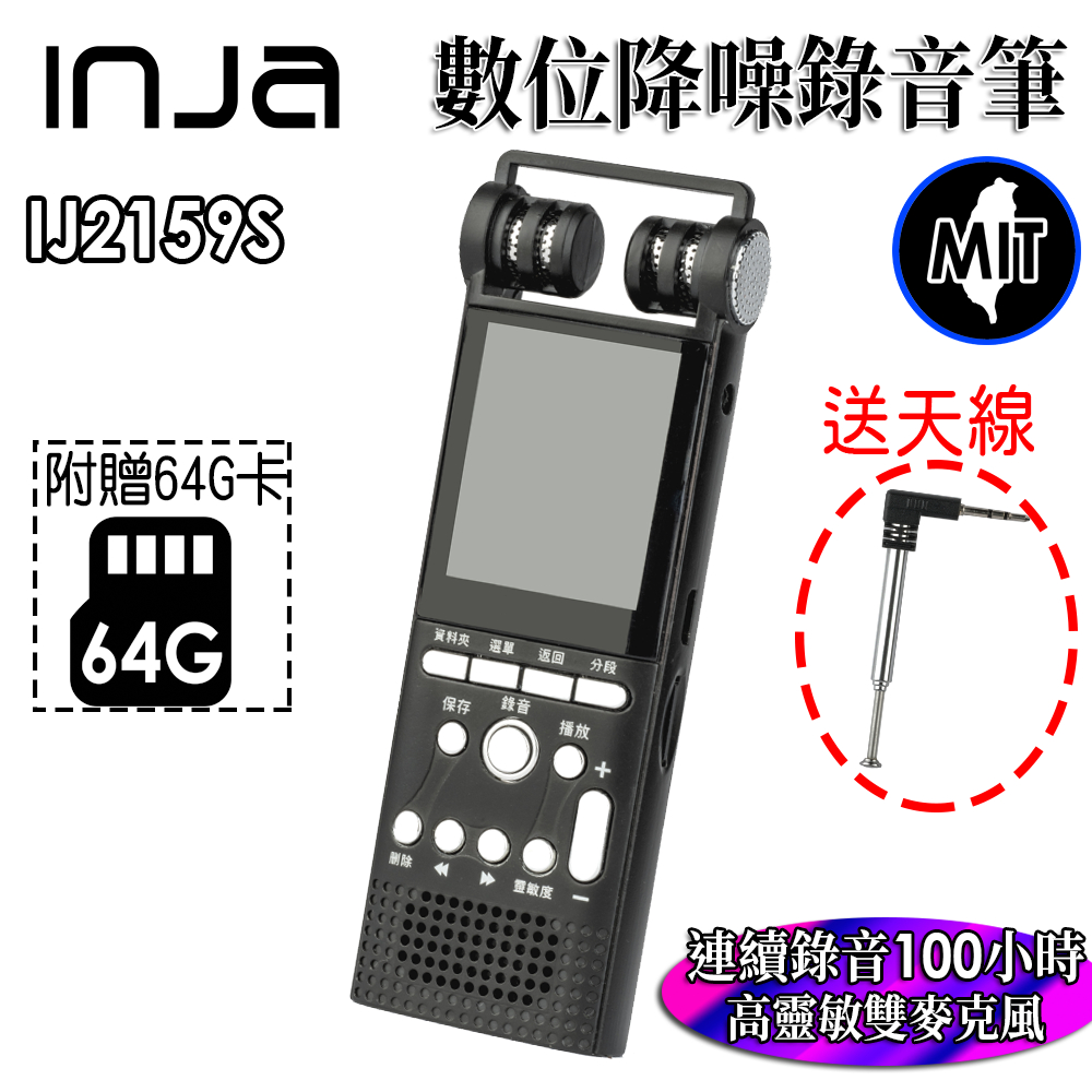 【INJA】 IJ2159S 降噪錄音筆 – 無損錄音 AGC調整 LINE-IN錄音 台灣製造 【送64G卡+天線】送64G記憶卡+收音機天線Voice RecordersINJA盈佳官方旗艦館