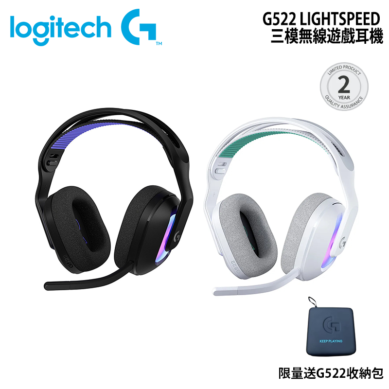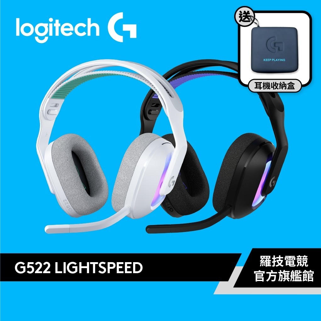Logitech G 羅技 G522 LIGHTSPEED 三模無線遊戲耳機 | 贈耳機收納盒【電競館】白,贈G522耳機收納盒|黑色,贈G522耳機收納盒Logitech G 羅技電競官方旗艦館