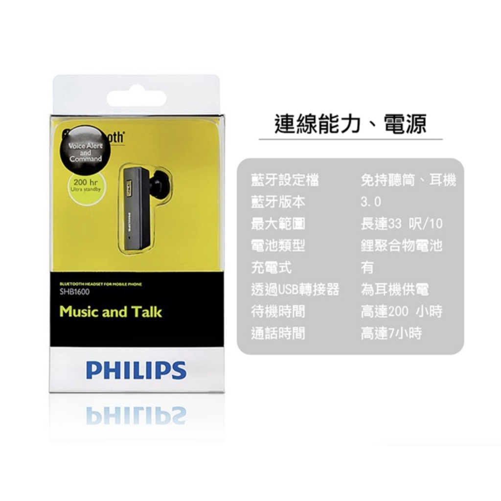 【飛利浦PHILIPS】SHB1600/97 耳塞式藍芽耳機 機車通話 單耳 附耳掛 商務型【飛利浦PHILIPS】SHB1600/97 耳塞式藍芽耳機 機車通話 單耳 附耳掛 商務型Lycander官方旗艦店