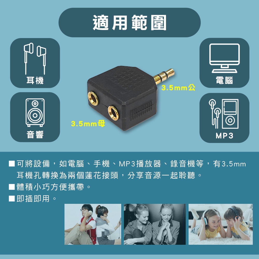 3.5mm公轉2孔3.5mm母 立體聲 音樂分享線 耳機分享 1公轉2母 音源分享器 音源線一分二本體x1i-gota官方旗艦館|昶興電子