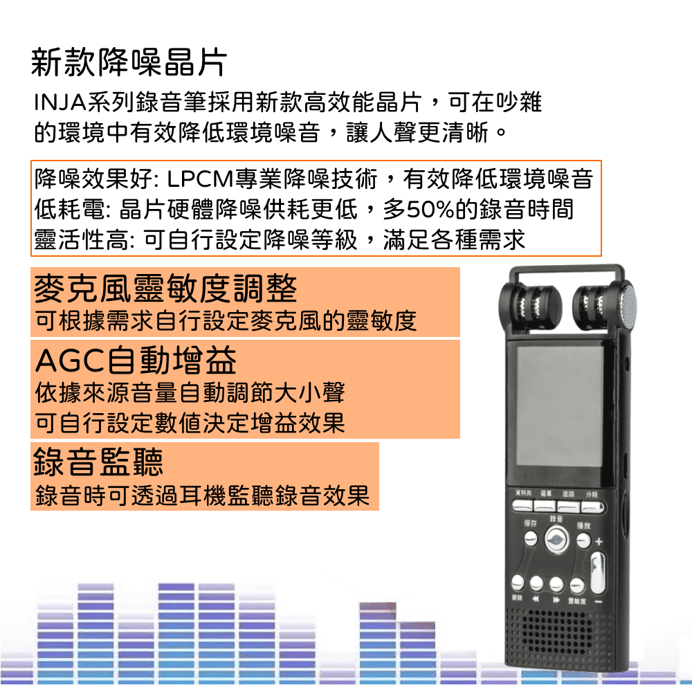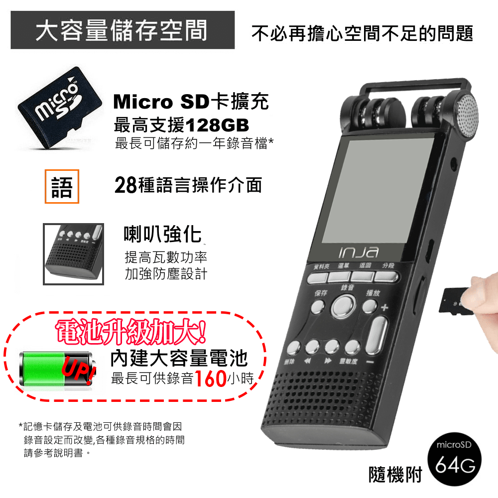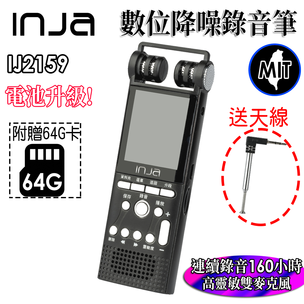 【INJA】 IJ2159 降噪錄音筆 – 無損錄音 LINE-IN錄音 台灣製造 電池加大升級 【送64G卡+天線】送64G記憶卡+收音機天線Voice RecordersINJA盈佳官方旗艦館