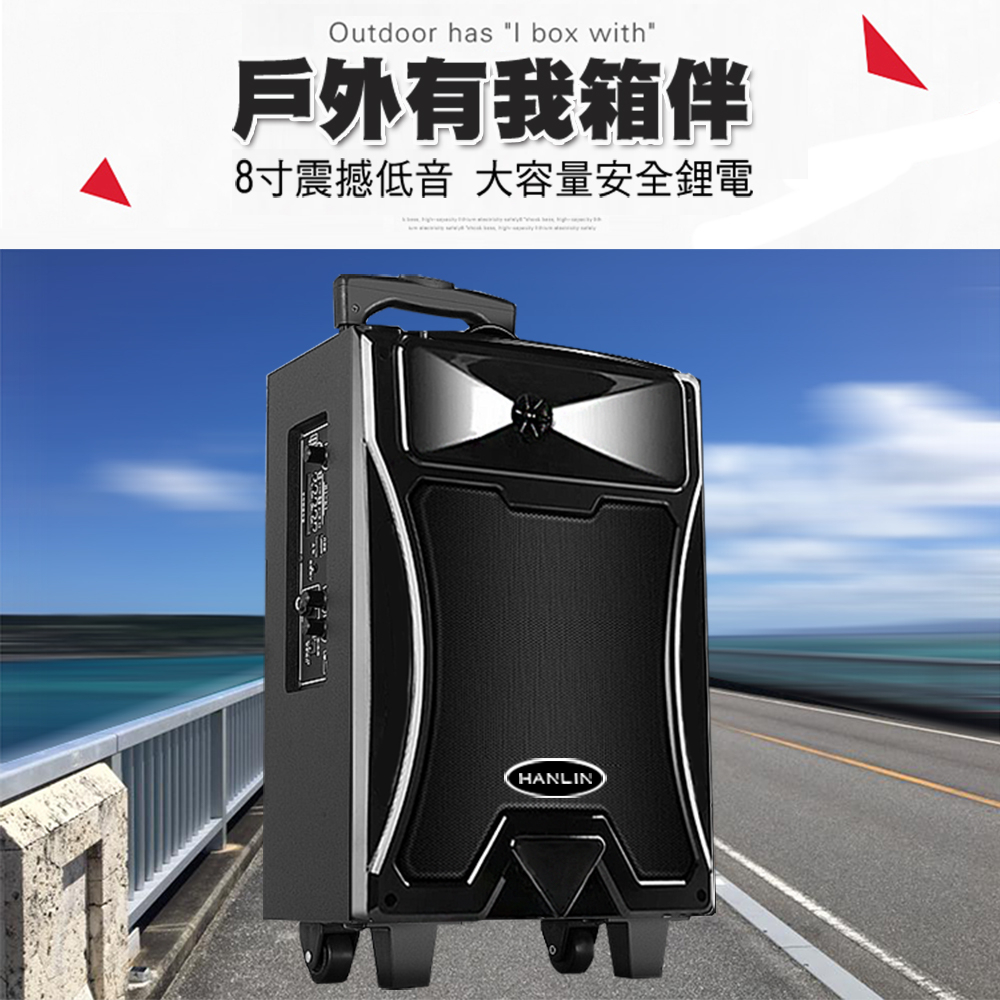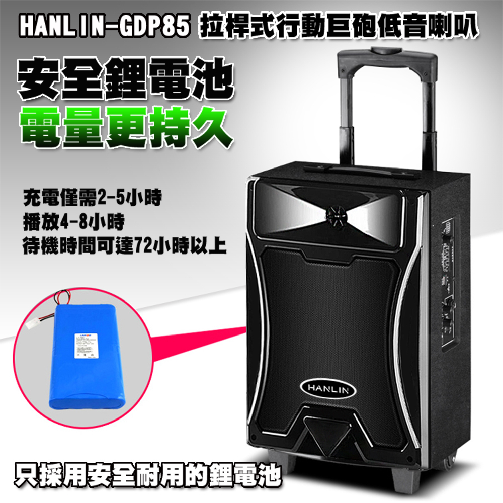 HANLIN-GDP85拉桿式行動巨砲低音喇叭 拉桿式 重低音喇叭 行動 卡拉OK 藍芽音響 USB黑SpeakersHANLIN官方旗艦店