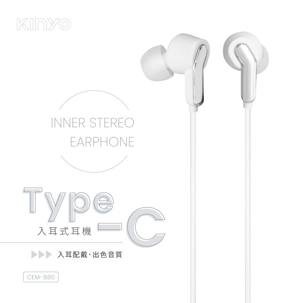 〖KINYO〗 Type-C入耳式耳機 (CEM) 運動耳機 有線耳機 附收納袋 立體聲 重低音 音樂耳機 CEM880KINYO官方旗艦店_家電館