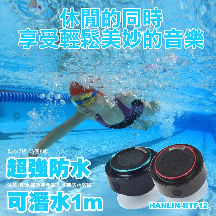 【HANLIN-BTF12 】防水7級震撼重低音懸空喇叭自拍音箱 超強防水等級 IP67 可潛水1M 藍芽紅色|藍色SpeakersHANLIN官方旗艦店