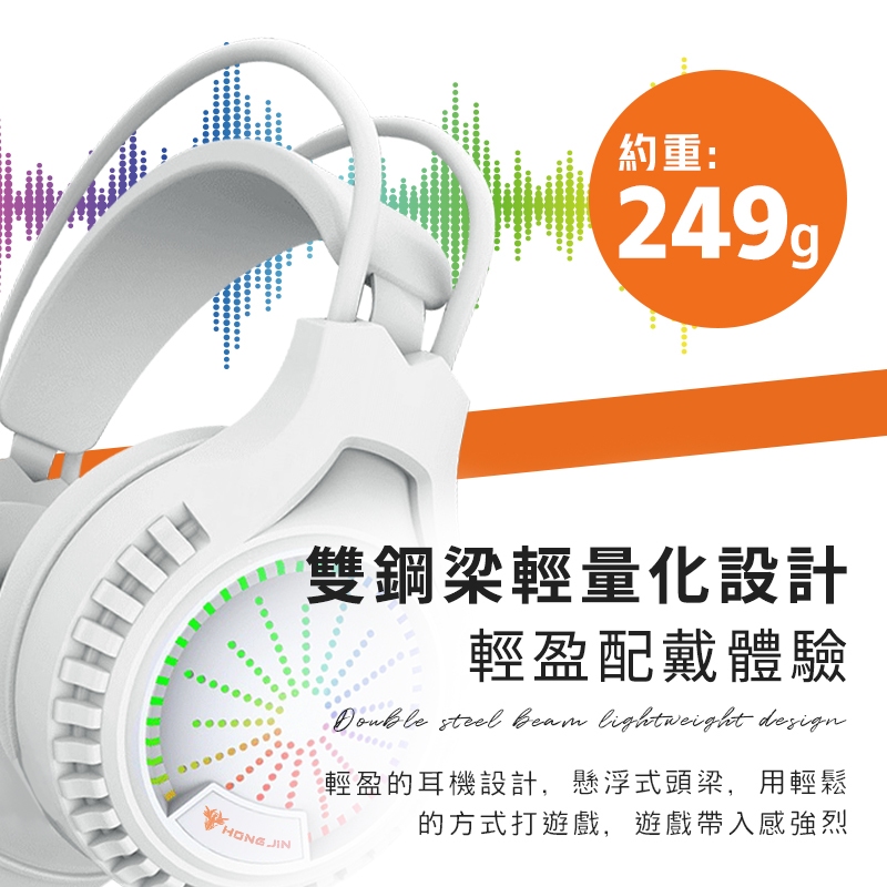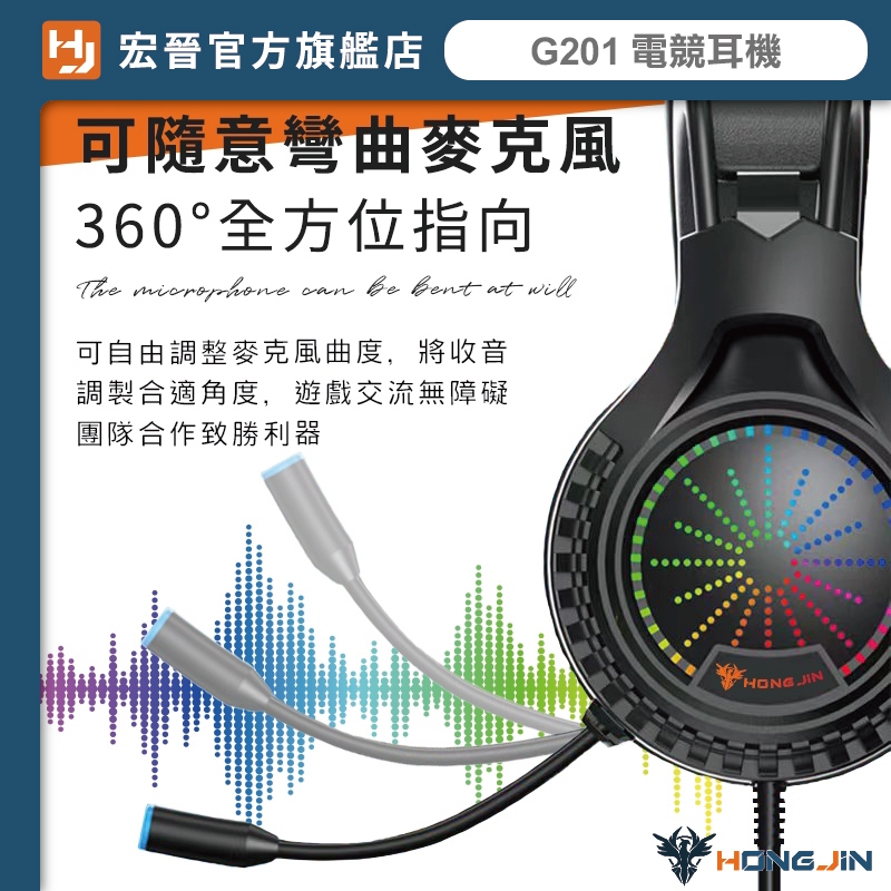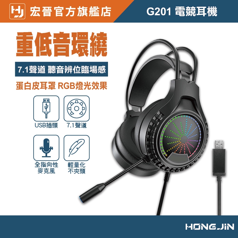宏晉 G201 電競耳機 USB隨插即用 頭戴式耳機麥克風 RGB耳罩式耳機 有線電競耳機 電競耳機 遊戲耳機黑色|白色HONG JIN 宏晉 |3C資訊廣場