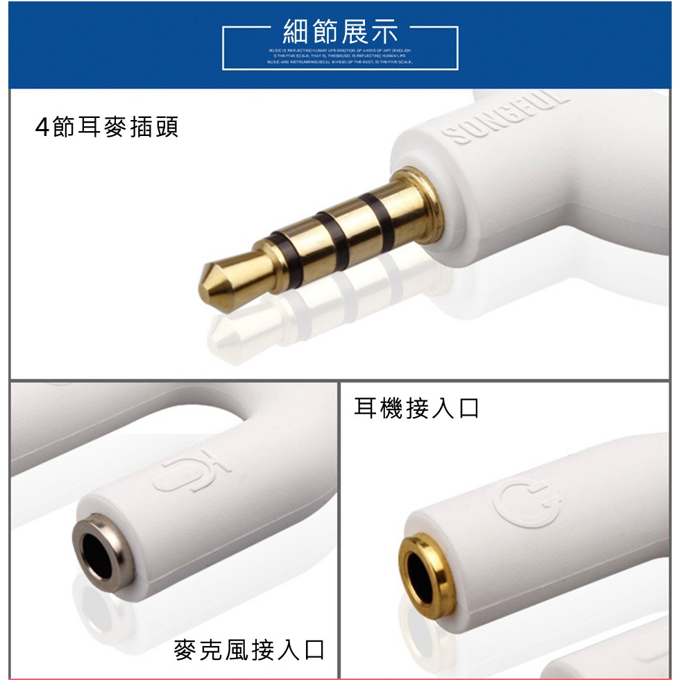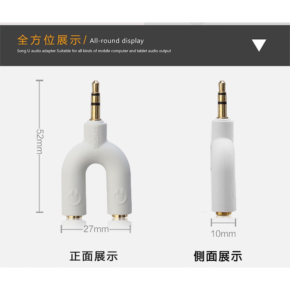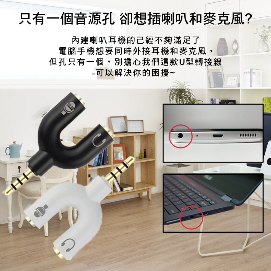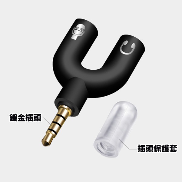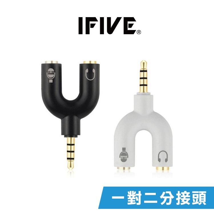 【IFIVE】U型二合一麥克風耳機分線器 耳麥轉接線 一分二耳機與麥克風(白) 一入IFIVE官方旗艦店