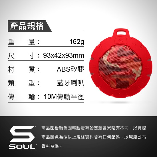 【SOUL】STORM防水無線藍牙喇叭 – 迷彩出清 無保固可接受再買迷彩紅(無保固)|迷彩藍(無保固)Speakersi2store官方生活旗艦店