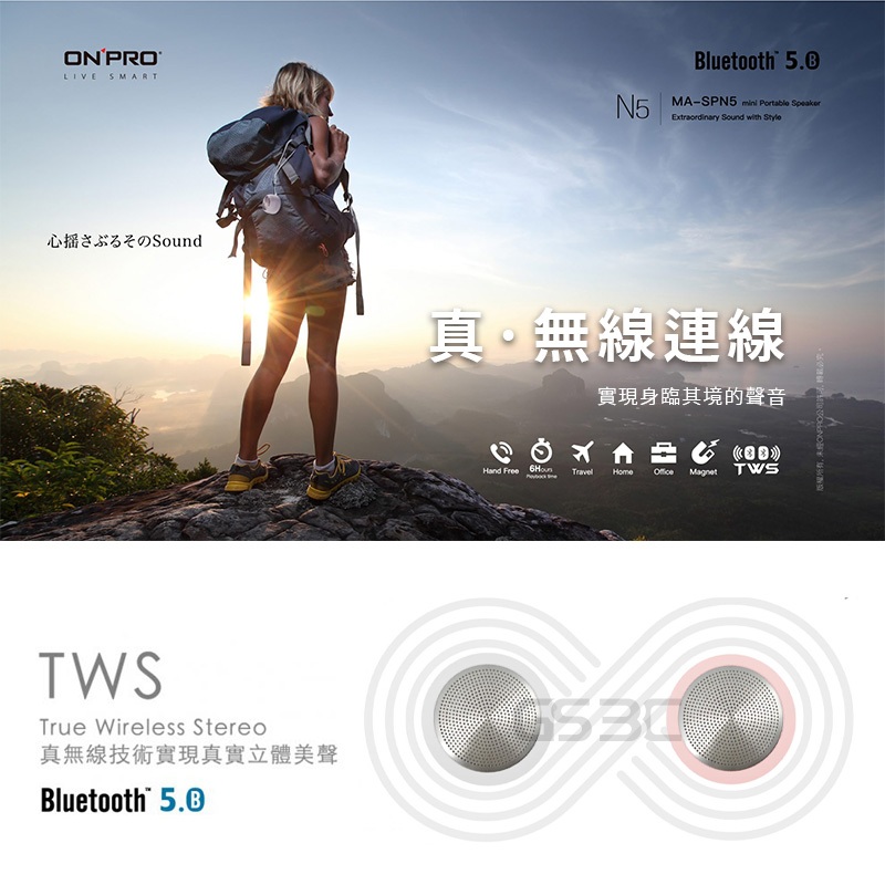 ONPRO MA-SPN5 真無線 藍牙 5.0 喇叭 小夜燈 磁吸設計 2台可配對 迷你 方便攜帶 TWS 立體環繞粉色|深藍SpeakersGS 3C 手機平板配件選品店
