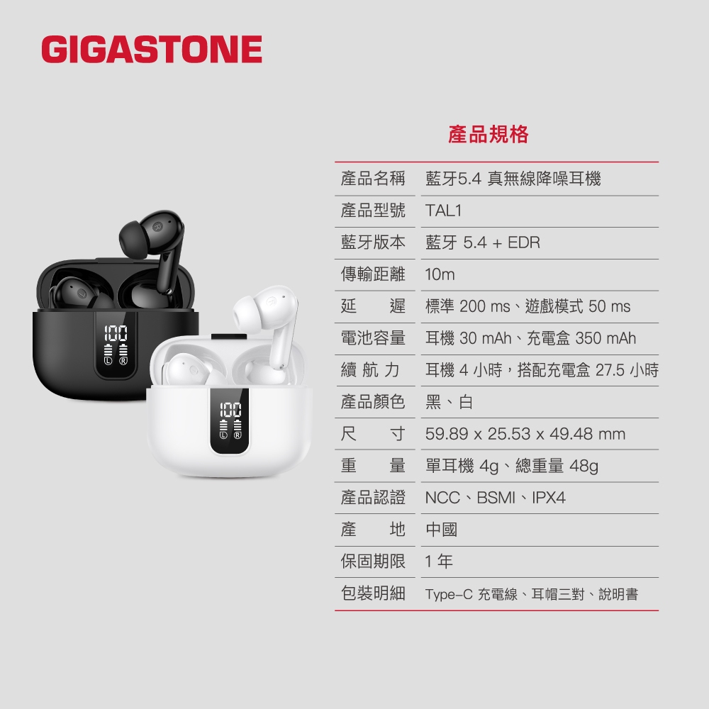 【GIGASTONE】藍牙5.4 ANC主動降噪耳機雙入組|LED電量顯示/遊戲低延遲/earpods藍芽/抗噪真無線太空黑 x 2,基本款-藍牙5.1|太空黑 x 2,經典款-藍牙5.3【熱銷】|太空黑 x 2,旗艦款-藍牙5.4|珍珠白 x 2,基本款-藍牙5.1|珍珠白 x 2,經典款-藍牙5.3【熱銷】|珍珠白 x 2,旗艦款-藍牙5.4|太空黑+珍珠白,基本款-藍牙5.1|太空黑+珍珠白,經典款-藍牙5.3【熱銷】|太空黑+珍珠白,旗艦款-藍牙5.4GIGASTONE 立達國際官方旗艦店