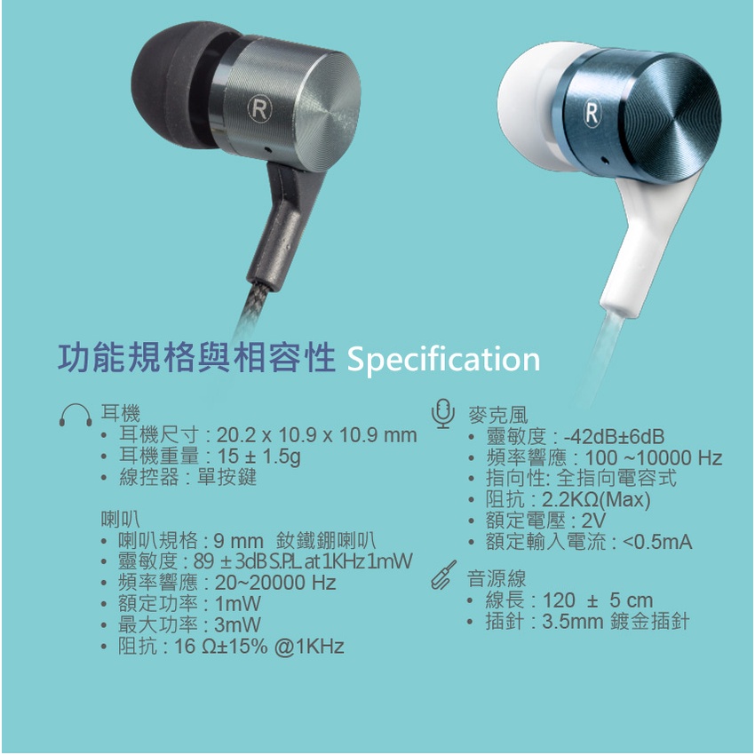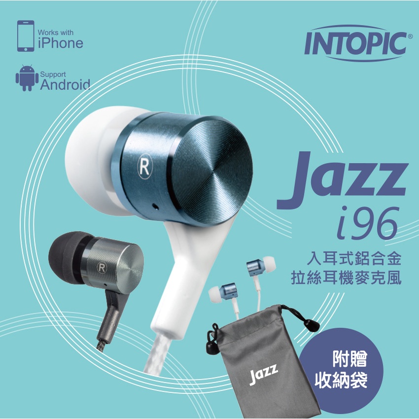 【Intopic】JAZZ-I96 入耳式 鋁合金 拉絲 耳機麥克風藍色|灰色Intopic廣鼎國際 | 官方3C旗艦館