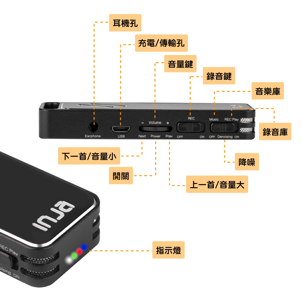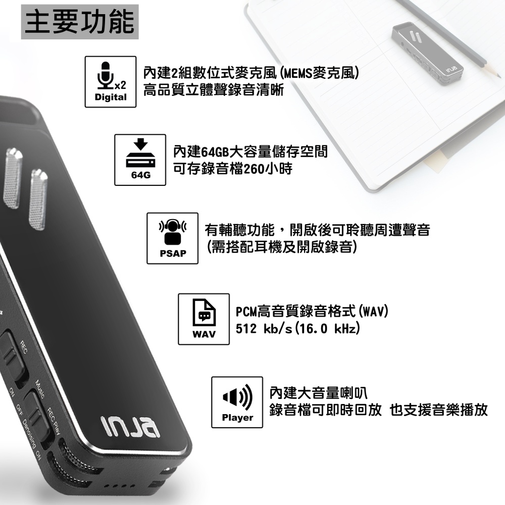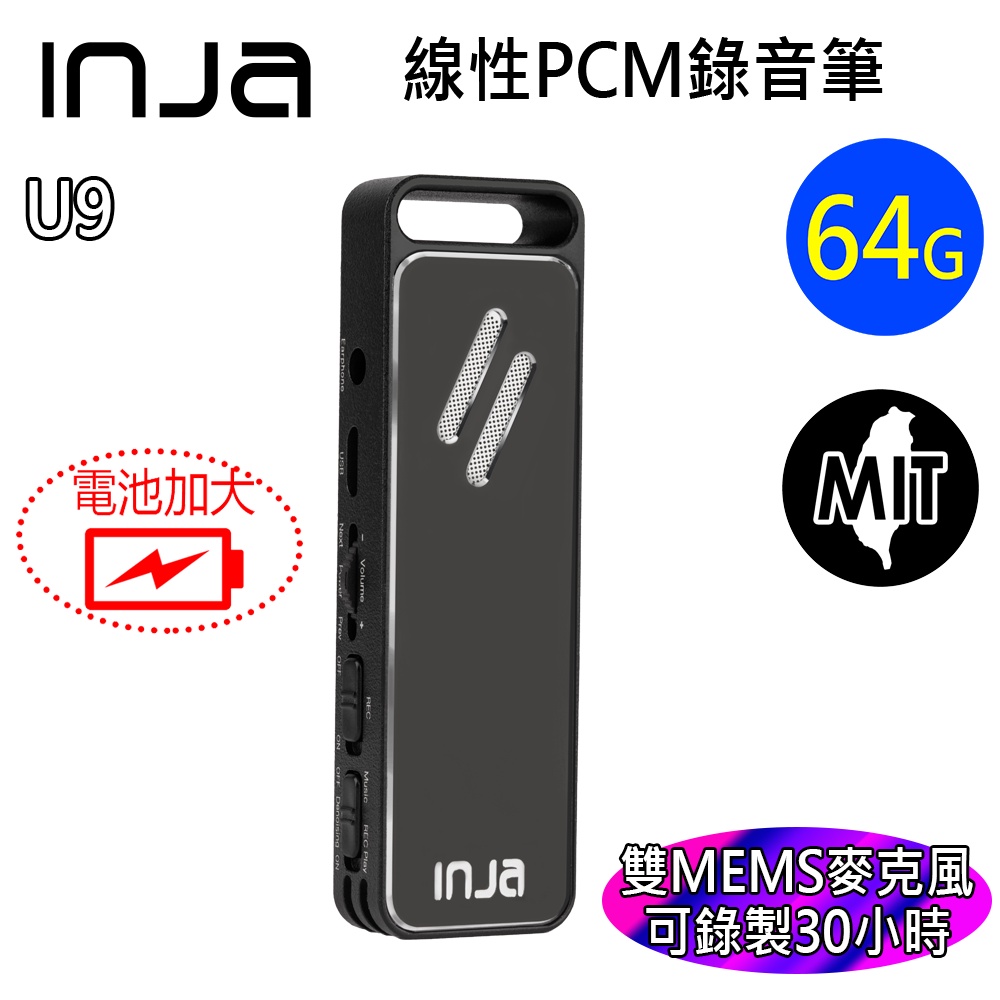 【INJA】 U9 PCM錄音筆 – 立體聲 雙MEMS麥克風 降噪 30錄音 錄音監聽 台灣製造 【64G 】主機-(內建64G)Voice RecordersINJA盈佳官方旗艦館
