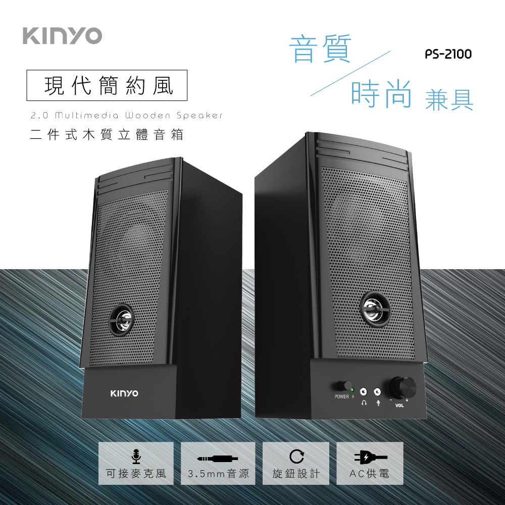 〖KINYO〗 二件式木質立體音箱 (PS) 木質 麥克風 耳機插孔 |電腦喇叭 2.0音箱 立體聲PS2100 木質立體音箱SpeakersKINYO官方旗艦店_家電館