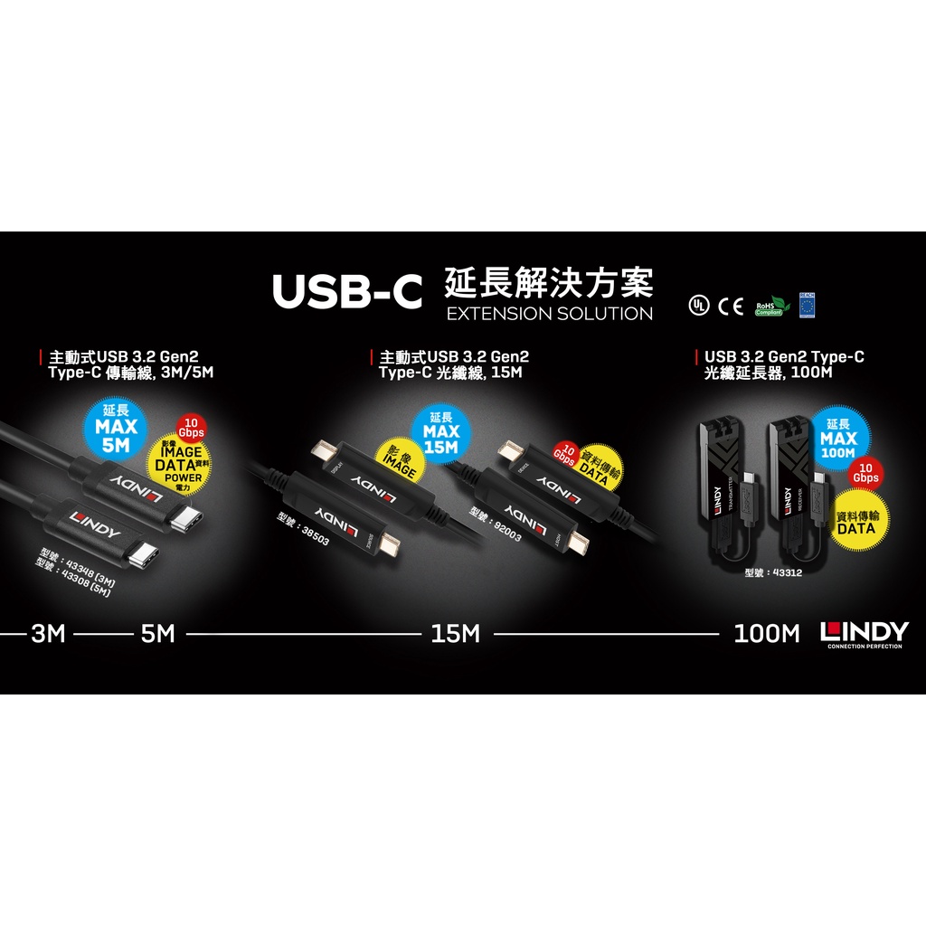 LINDY 林帝 主動式USB3.2 GEN2 TYPE-C 公 TO 公傳輸線, 5M (43308)LINDY 林帝 主動式USB3.2 GEN2 TYPE-C 公 TO 公傳輸線, 5M (43308)LINDY 林帝官方授權旗艦店