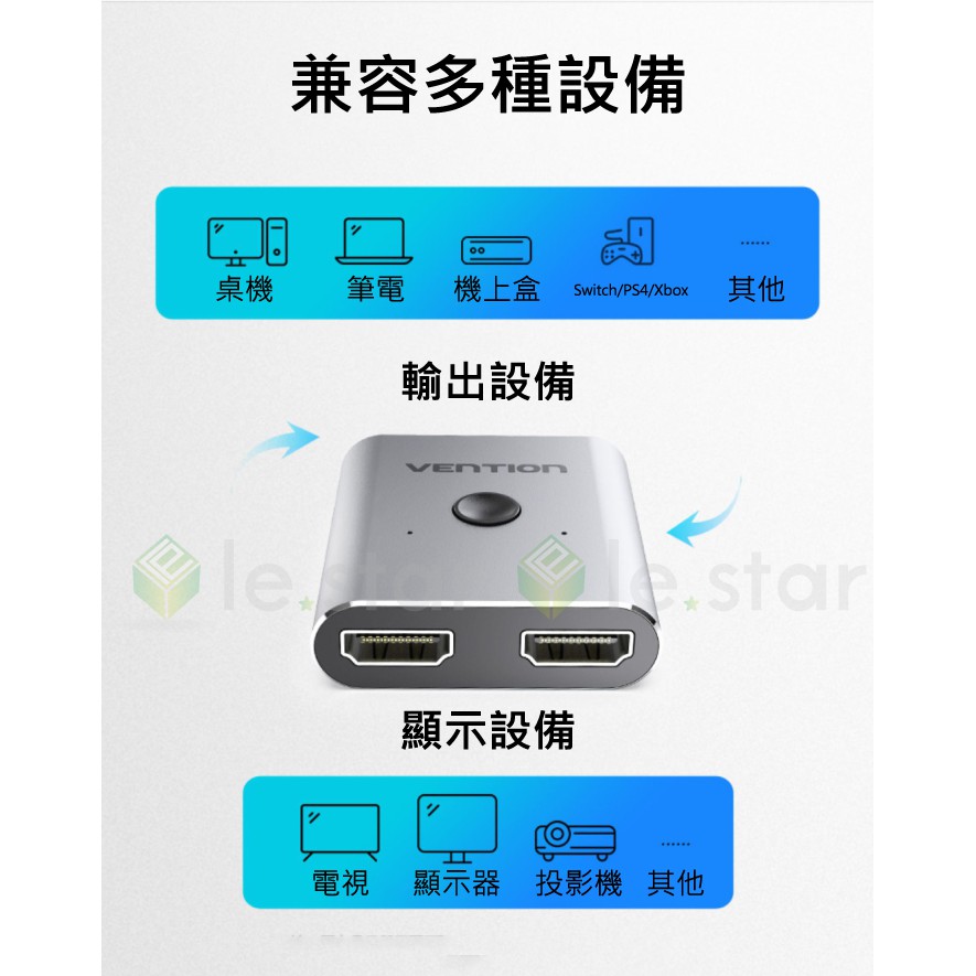 VENTION 威迅 AFUH0系列 HDMI 2.0 雙口雙向切換器 公司貨AFUH0|包裝破損lestar簡單生活