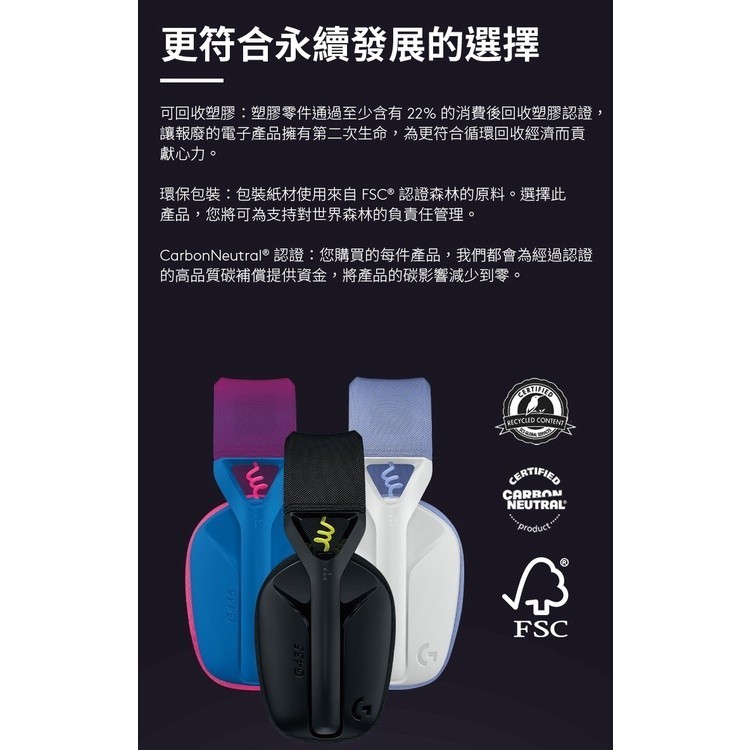 Logitech G 羅技 G435 輕量雙模無線藍芽耳機【電競館】黑色|白色|藍色Logitech G 羅技電競官方旗艦館