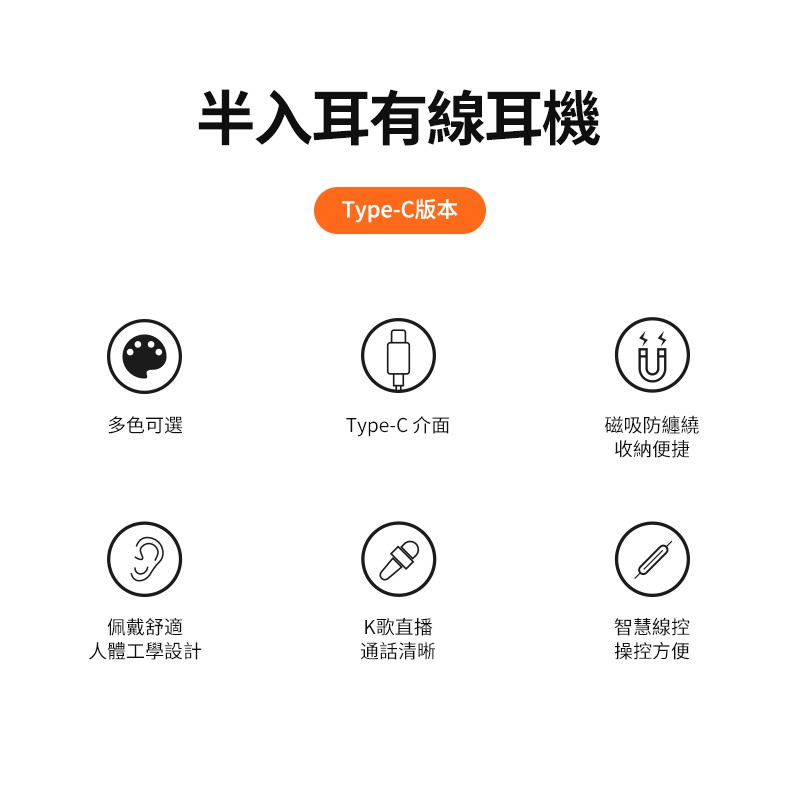 【iFory】Type-C 半入耳有線線控耳機 優質線材 抗拉耐用(iPhone 15/16/android手機適用)
