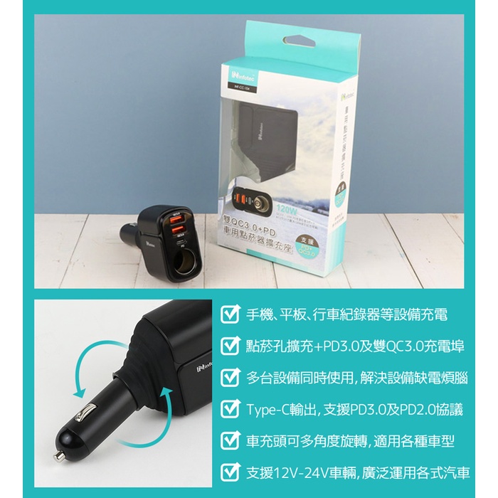 快速充電 車充 車用點菸器 公司貨 充電器 雙USB QC3.0 PD3.0 12-24V 擴充座 最大支援 120W快速充電 車充 車用點菸器 公司貨 充電器 雙USB QC3.0 PD3.0 12-24V 擴充座 最大支援 120WUSB Chargers, FM & Bluetooth TransmittersGS 3C 手機平板配件選品店