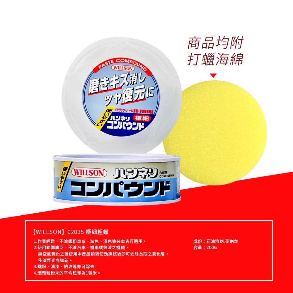 【Willson】抛光除痕粗蠟(1μm/3.5μm/7μm) 全車色適用 極細粗蠟 細目粗蠟 除痕租蠟1微米|3.5微米|7微米Wash & WaxesGoodcar168汽車精品百貨