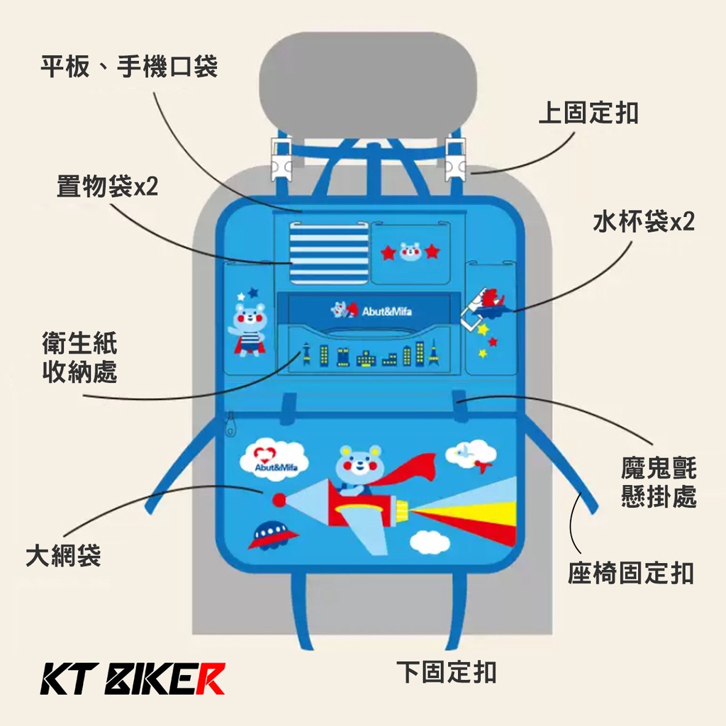 【KT BIKER】 卡通 椅背袋 韓版 車用椅背袋 椅背置物袋 汽車 收納袋 儲物袋 收納掛袋〔CIP004〕D.藍恐龍|F.藍汽車|G.天藍帆船|A.藍色小熊Organizers & CompartmentsKT BIKER 專注車品