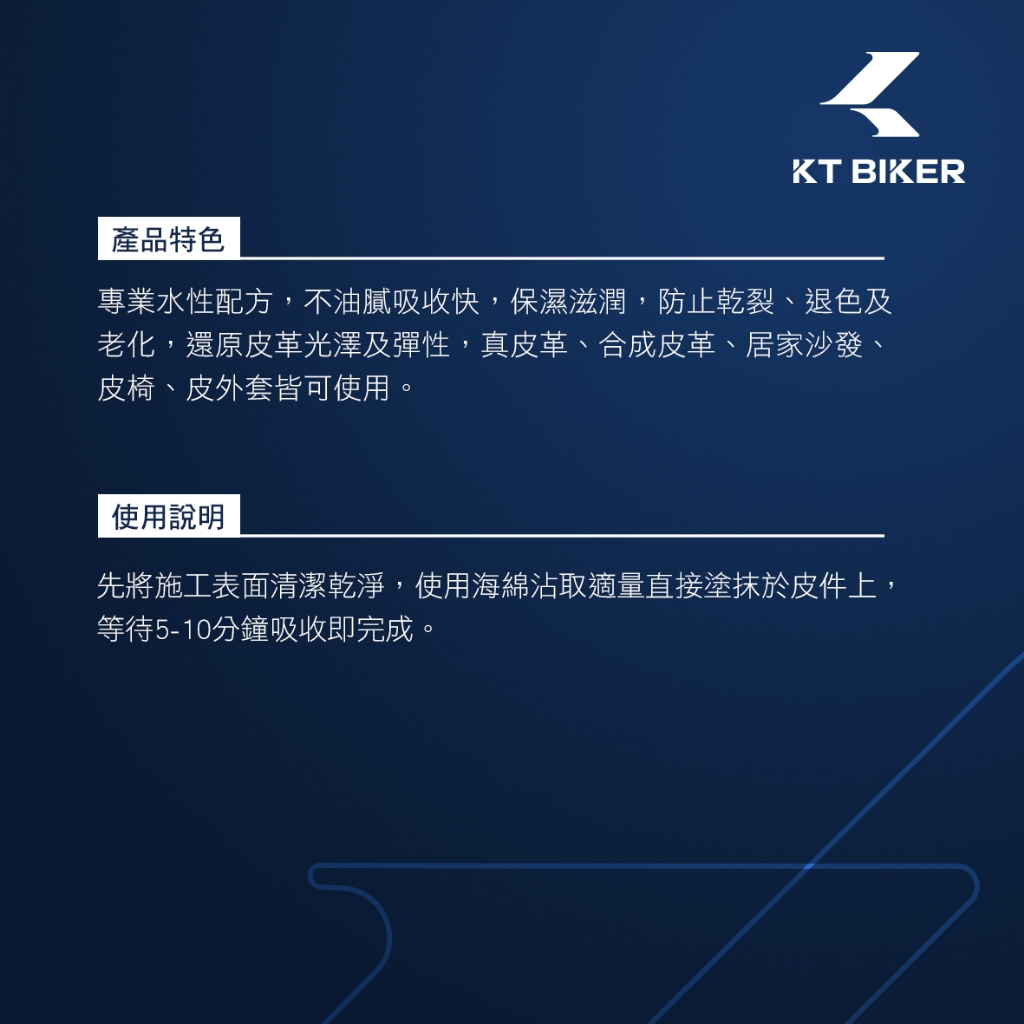 【KT BIKER】皮革保養乳 水性 皮椅保養 內裝保養 防止龜裂老化 皮革油〔VBT004〕新包裝|舊包裝Interior CareKT BIKER 專注車品