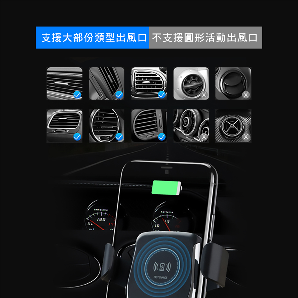 QC3.0 無線快充車架 汽車冷氣出風口夾 無線充電 車用USB 快速充電 充電器 充電頭 盒損品 獨本體x1_盒損品USB Chargers, FM & Bluetooth Transmittersi-gota官方旗艦館|昶興電子