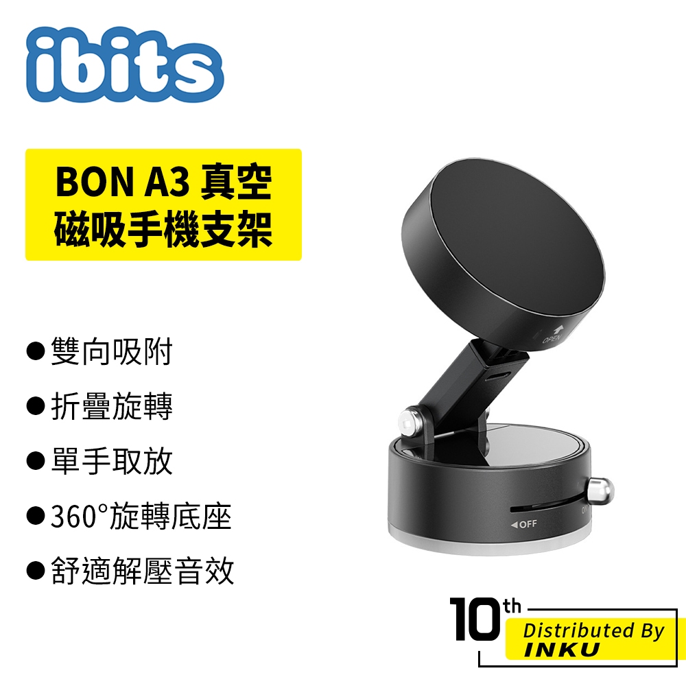 ibits BON A3 真空磁吸手機支架 雙向吸附 360旋轉 N54磁鐵 單手取放曜石黑|星月白Phone Holdersibits手機配件 官方旗艦館