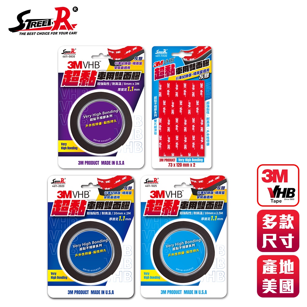 【Street-R】3M VHB系列 超黏車用雙面膠 小規格 多種尺寸寬10mmx長2.5M|寬20mm長x2M|寬73mmx長120mm(2片)|寬8mmx長3MOthersGoodcar168汽車精品百貨