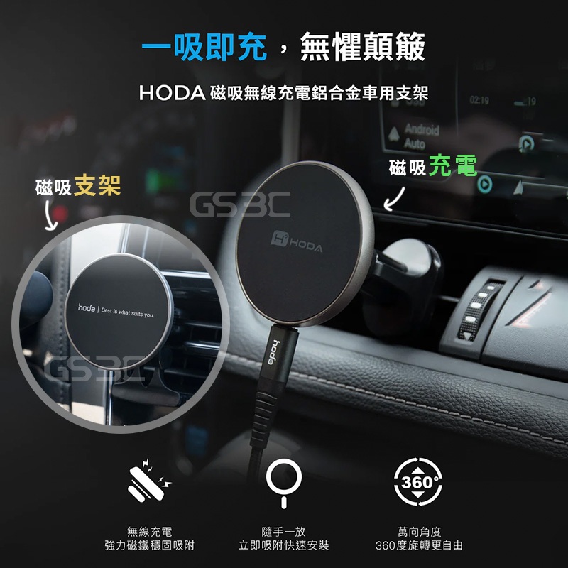 hoda 鋁合金 車用 出風口 磁吸 充電式 汽車 手機支架 iPhone 16 磁力 車架 快充 最高15W 三星磁吸充電支架-鈦金(贈充電線)|磁吸充電支架-鈦黑(贈充電線)|磁吸支架-鈦金(無充電)|磁吸支架-鈦黑(無充電)Phone HoldersGS 3C 手機平板配件選品店