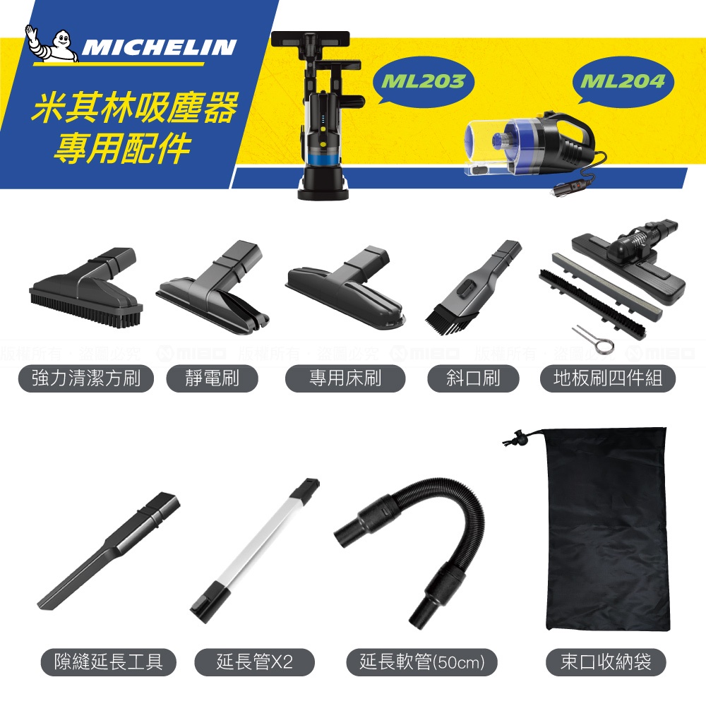 MICHELIN 米其林 吸塵器配件 ML203、ML204機型可用50公分延長軟管|尼龍束口收納袋|斜口刷Interior CareMICHELIN 米其林生活精品官方旗艦館