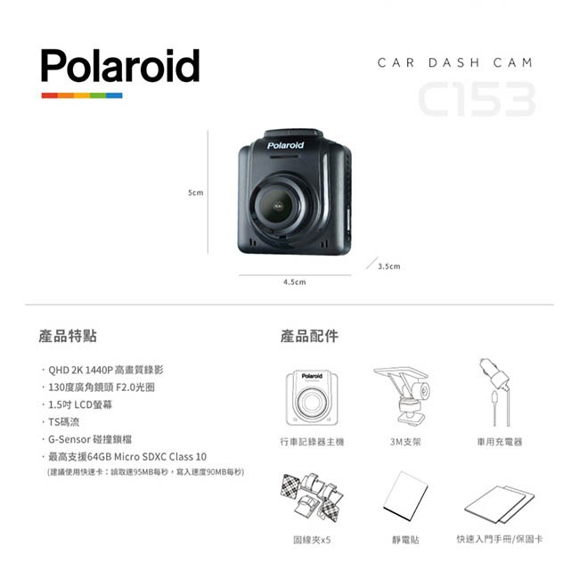 Polaroid 寶麗萊 C153 2K鏡頭 市場最小TS碼流款 行車記錄器 送32G卡 (禾笙科技)Polaroid 寶麗萊 C153 2K鏡頭 市場最小TS碼流款 行車記錄器 送32G卡 (禾笙科技)Camcorders & Parking CamerasMenPower 禾笙科技︱汽車影音館