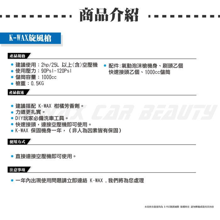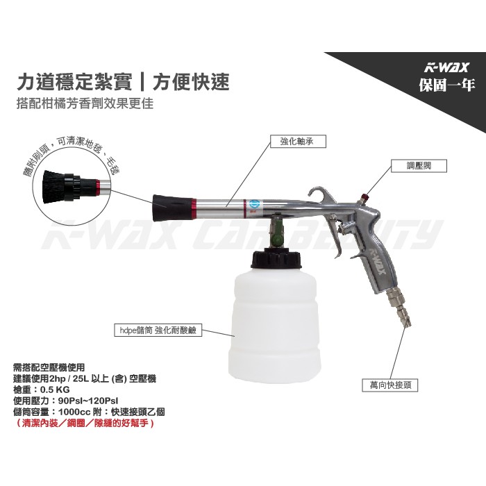 K-WAX 氣動旋風槍 引擎室清潔 內裝清潔 汽車美容 氣動泡沫槍 氣動泡沫機K-WAX 氣動旋風槍 引擎室清潔 內裝清潔 汽車美容 氣動泡沫槍 氣動泡沫機Tire & Wheel CareK-WAX 汽車美容 汽車蠟 棕櫚蠟 鍍膜 維護劑 洗車藥水 洗車打蠟
