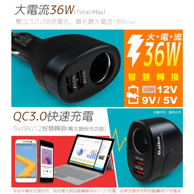aibo 車用QC3.0 36W 車用充電器 車充 (雙USB埠+點菸孔) AB433aibo 車用QC3.0 36W 車用充電器 車充 (雙USB埠+點菸孔) AB433USB Chargers, FM & Bluetooth TransmittersLANS藍星數位3C配件|旗艦店
