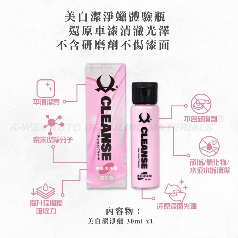 K-WAX 美白潔淨蠟體驗瓶 不到50元輕鬆入手 不含研磨劑 去除黑刁底 流鼻涕 水痕 水垢 清潔蠟 美白蠟 棕櫚蠟K-WAX 美白潔淨蠟體驗瓶 不到50元輕鬆入手 不含研磨劑 去除黑刁底 流鼻涕 水痕 水垢 清潔蠟 美白蠟 棕櫚蠟Wash & WaxesK-WAX 汽車美容 汽車蠟 棕櫚蠟 鍍膜 維護劑 洗車藥水 洗車打蠟