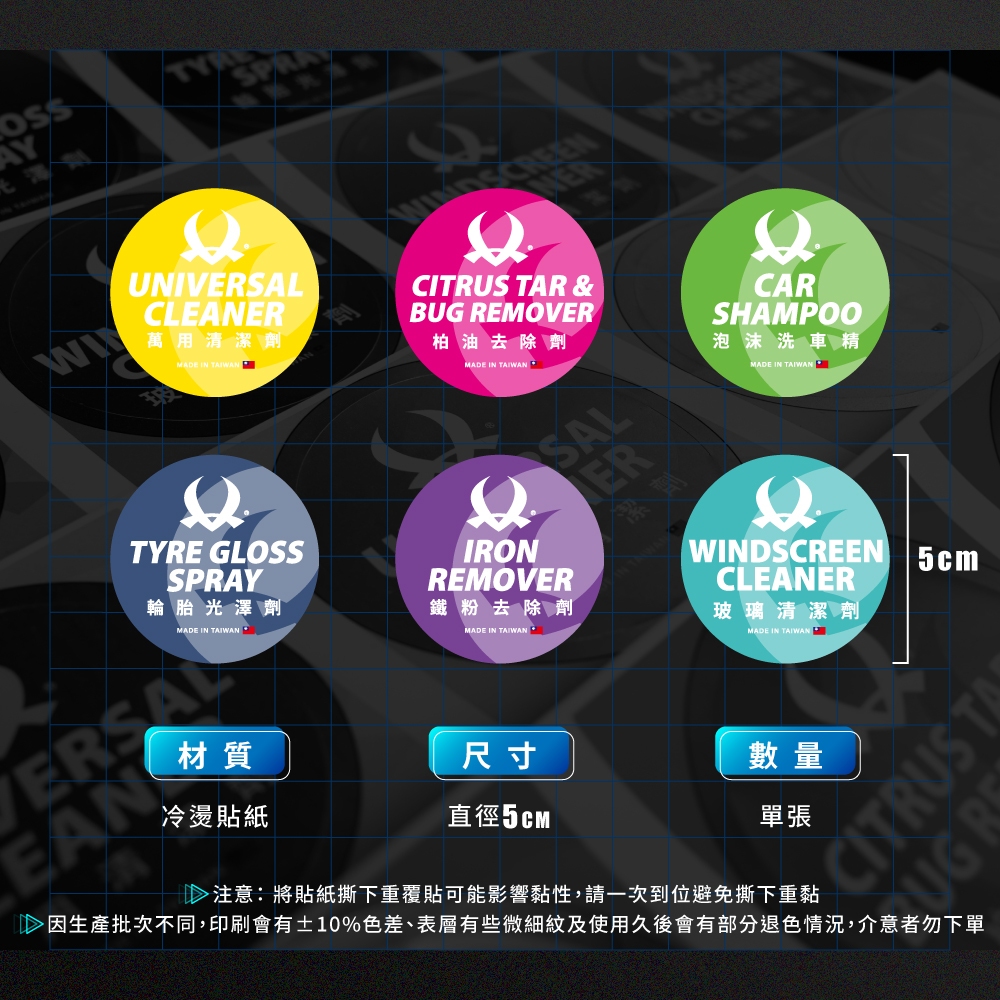 藥水分類貼紙 分類貼紙 分裝貼紙 藥水分裝貼紙 防水不留殘膠 冷燙貼紙鐵粉去除劑款|柏油去除劑款|泡沫洗車精款|萬用清潔劑款|玻璃清潔劑款|輪胎光澤劑款OthersK-WAX 汽車美容 汽車蠟 棕櫚蠟 鍍膜 維護劑 洗車藥水 洗車打蠟