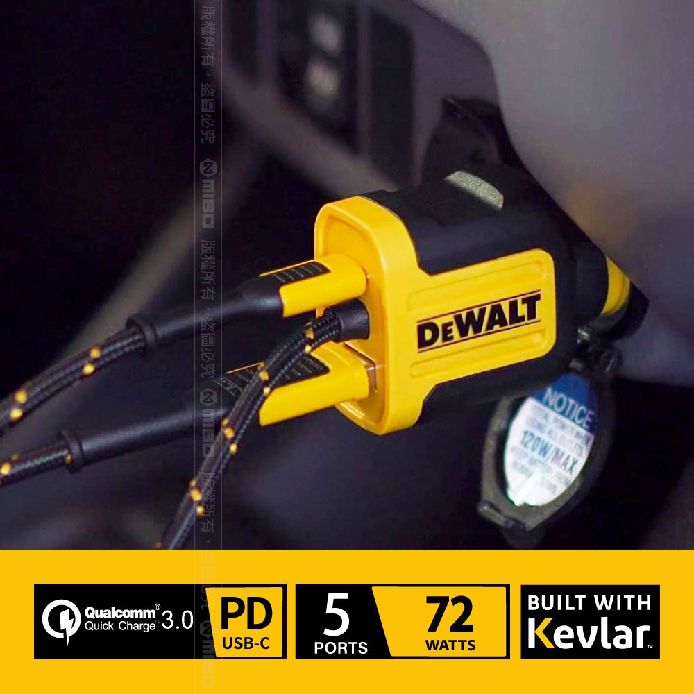 DEWALT 得偉 5孔 72W分離式車充 PD+QC3.0+3USB 總代理公司貨福利品輕微汙損/裸裝|福利品較重汙損/裸裝|全新品USB Chargers, FM & Bluetooth TransmittersMICHELIN 米其林生活精品官方旗艦館