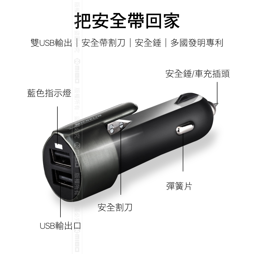 MICHELIN 米其林 ML388 多功能車充 車窗擊破器 安全帶割刀 雙2.4A USB |原廠贈品|零元加購|MICHELIN 米其林 ML388 多功能車充 車窗擊破器 安全帶割刀 雙2.4A USB |原廠贈品|零元加購|USB Chargers, FM & Bluetooth TransmittersMICHELIN 米其林生活精品官方旗艦館