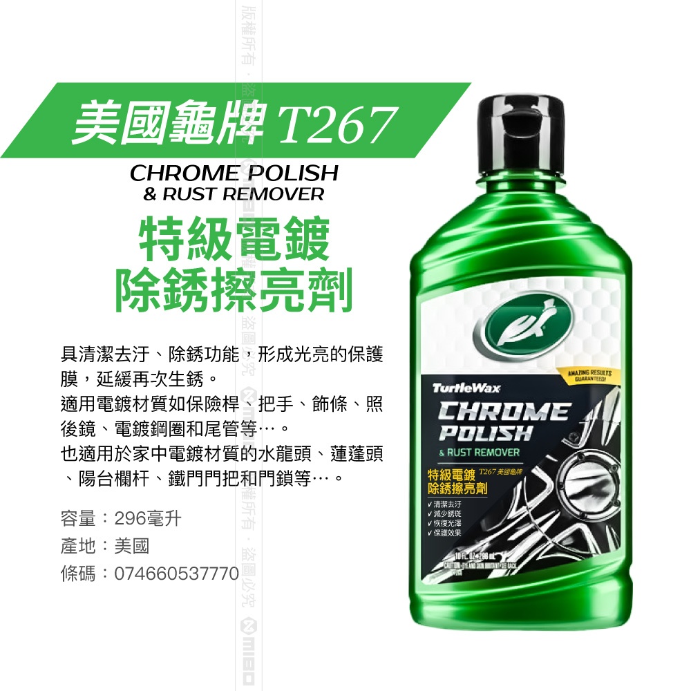 美國龜牌 Turtle Wax 特級電鍍 除鏽擦亮劑 T267 公司貨美國龜牌 Turtle Wax 特級電鍍 除鏽擦亮劑 T267 公司貨Wash & WaxesMICHELIN 米其林生活精品官方旗艦館