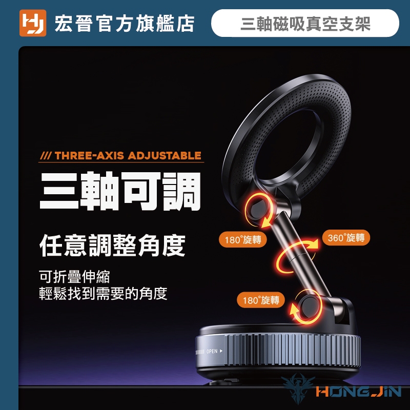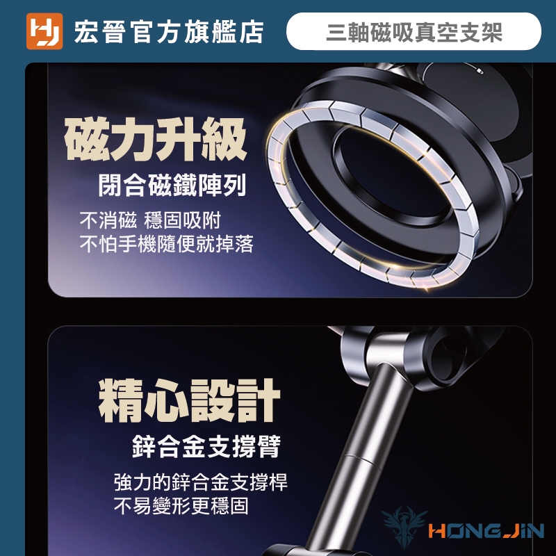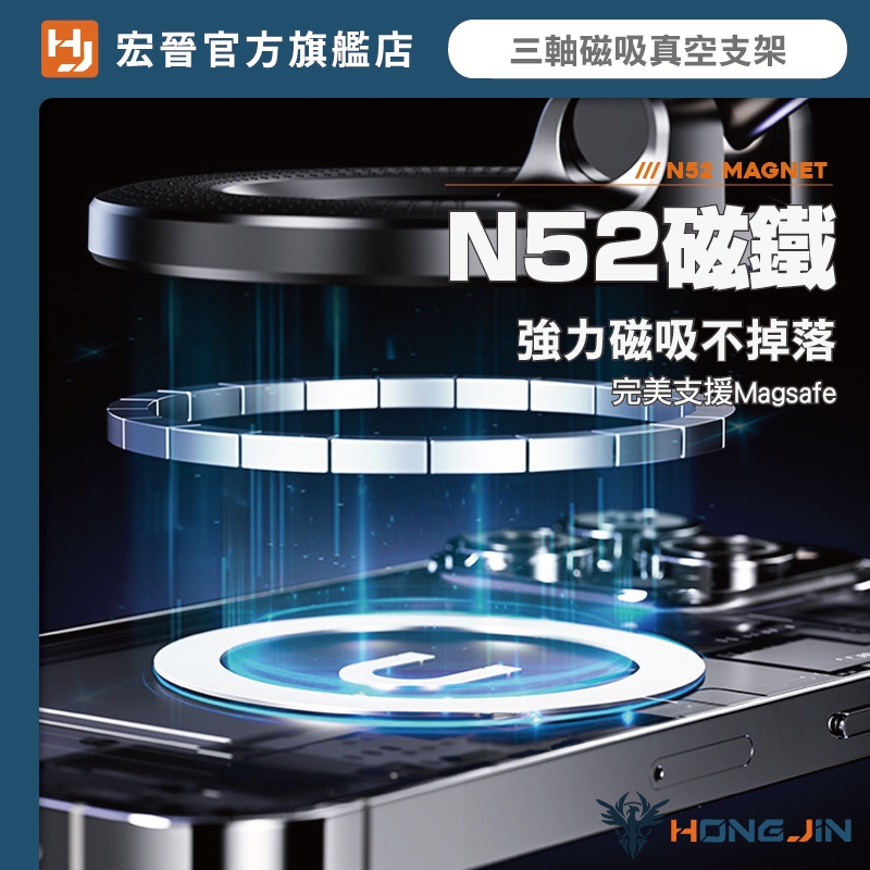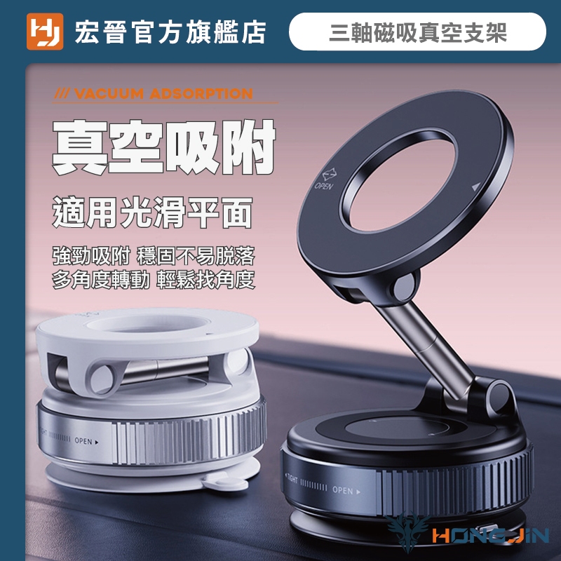宏晉 三軸磁吸真空支架 真空吸附手機支架 光滑處可吸 金屬 車載支架 真空吸附 Magsafe磁吸支架 汽車導航架白|黑Phone HoldersHONG JIN 宏晉 |3C資訊廣場