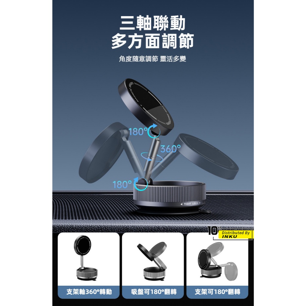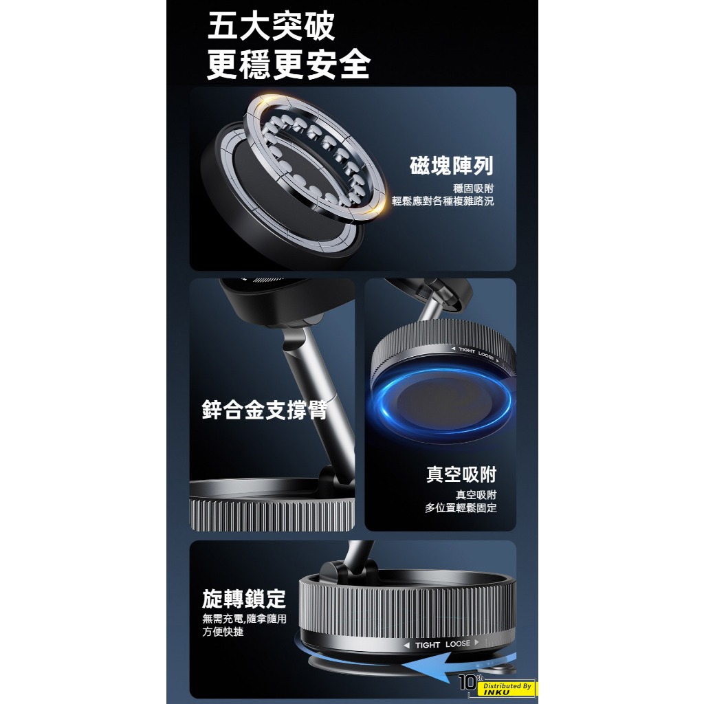 ibits K10 車用真空磁吸手機支架 吸盤式吸附 多角度調節 N52銣磁 汽車導航炫酷黑|典雅白Phone Holdersibits手機配件 官方旗艦館